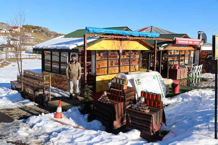 Yılın dört mevsimi yerli ve yabancı turistleri ağırlayan yaylada yol kapanmadığı sürece satış yapan İsmail Kandemir, arıların bin bir çeşit çiçekten bal elde ettiğini söyledi.