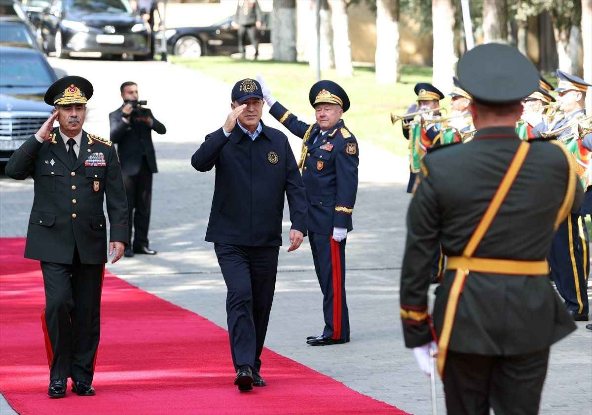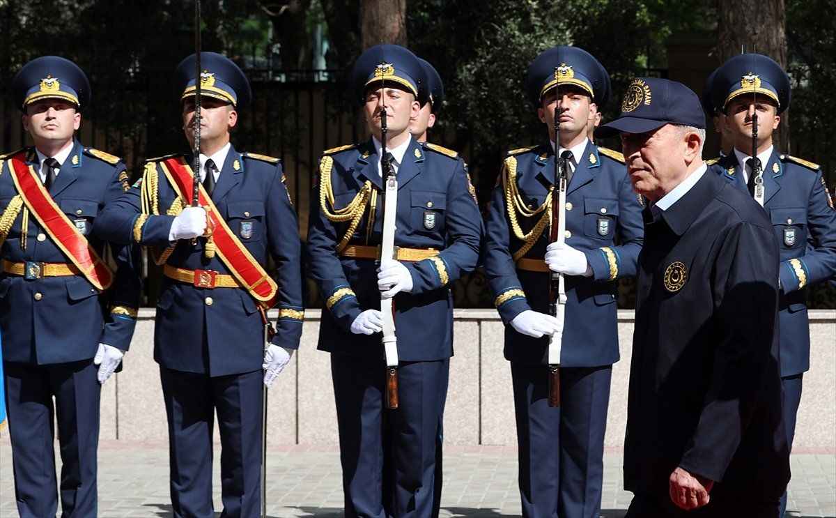Haydar Aliyev Havalimanı'nda Azerbaycan Savunma Bakanı Orgeneral Zakir Hasanov tarafından karşılanan Bakan Akar için savunma bakanlığında askeri tören düzenlendi.
