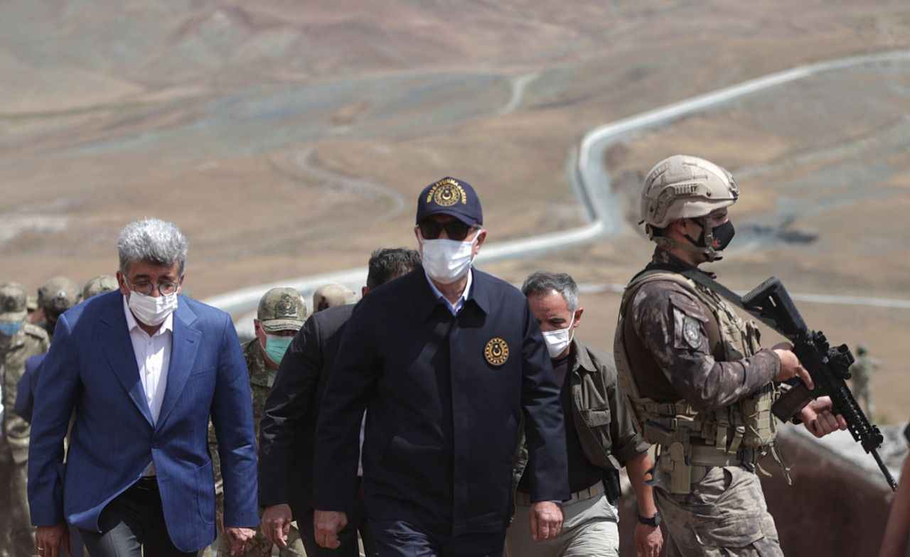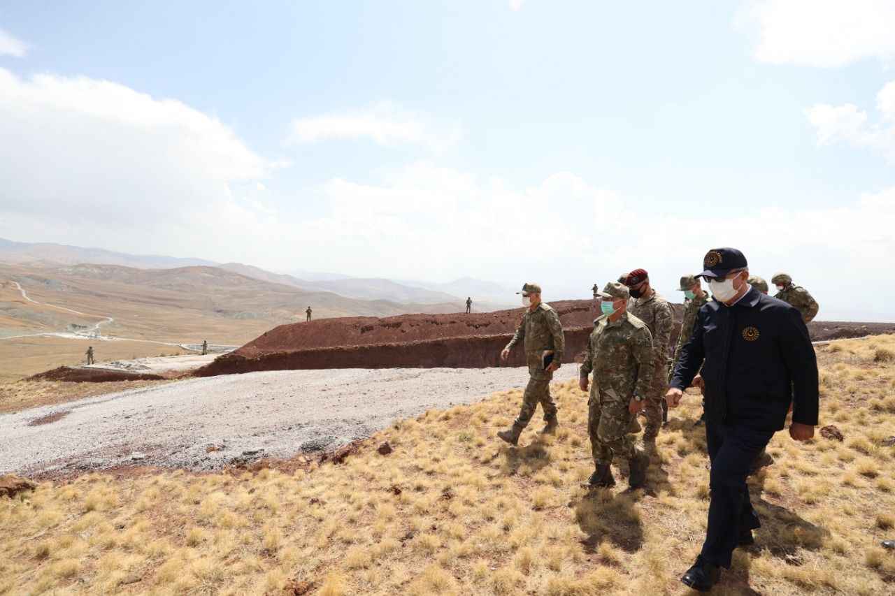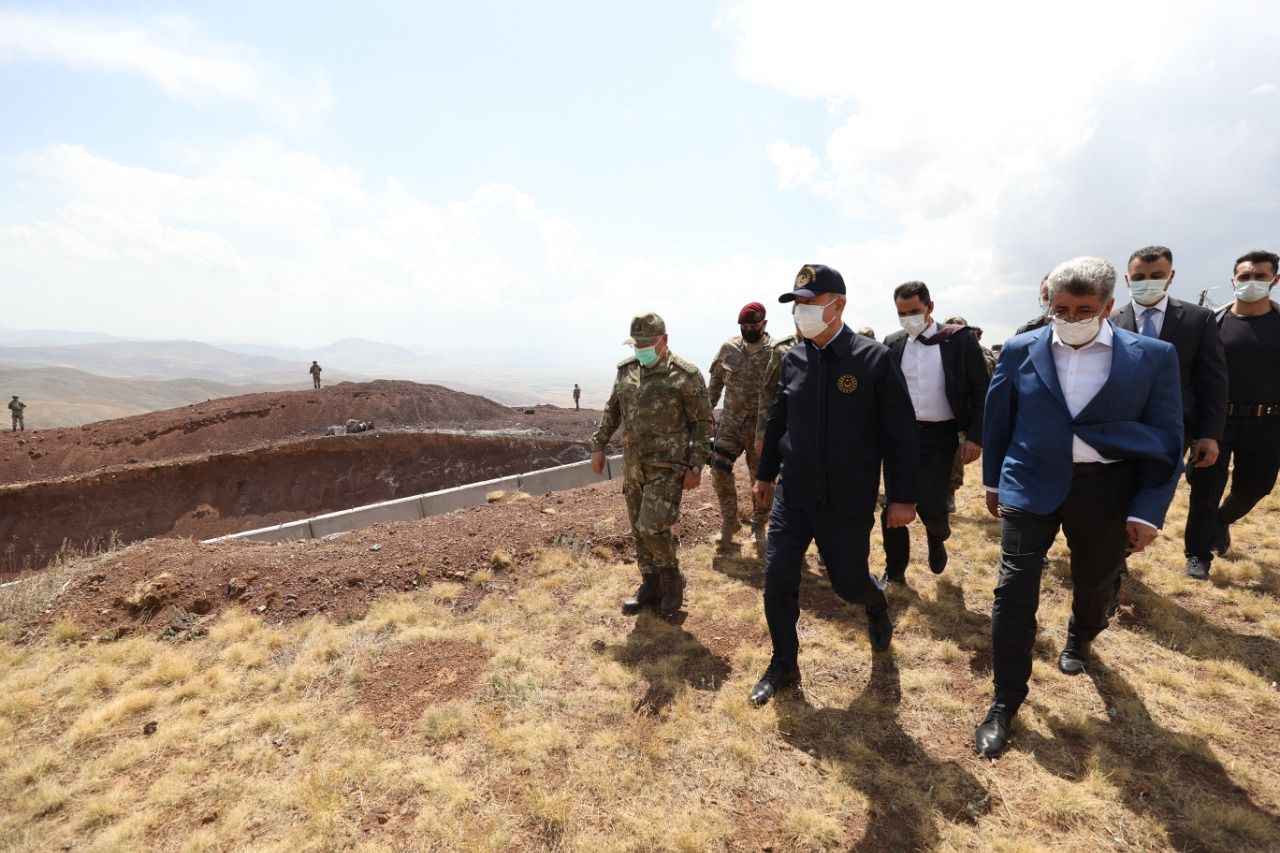 Buradan helikopterle sınır hattı boyunca incelemelerde bulunan Akar ve komutanlar daha sonra sıfır noktasındaki 2 bin 618 rakımlı Kocaçukur Tepe gözetleme mevzisine gitti.