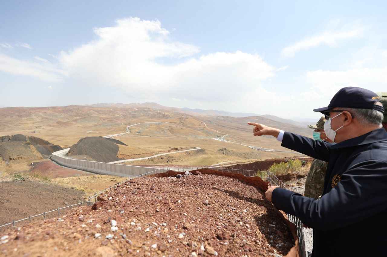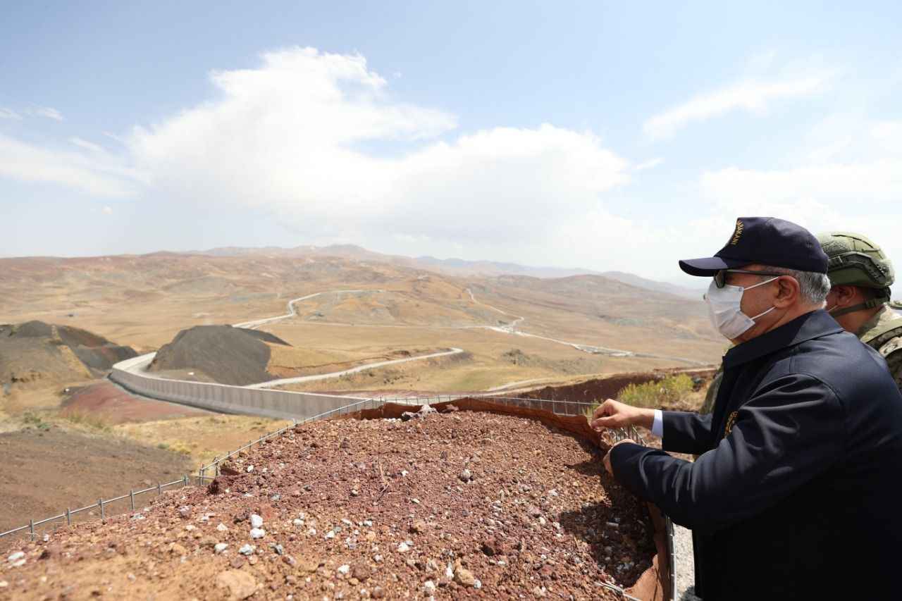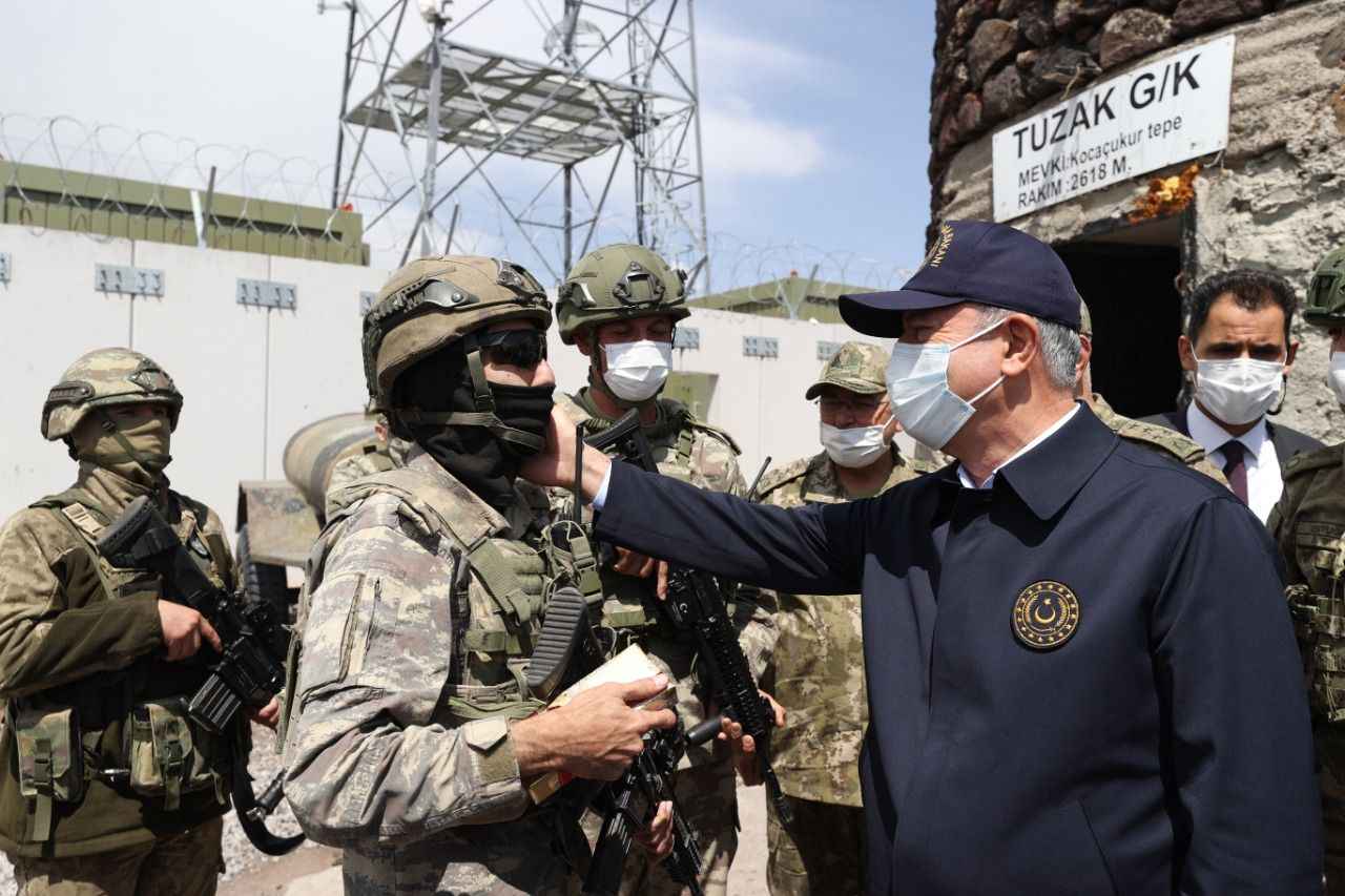 Buradan helikopterle sınır hattı boyunca incelemelerde bulunan Akar ve komutanlar daha sonra sıfır noktasındaki 2 bin 618 rakımlı Kocaçukur Tepe gözetleme mevzisine gitti.