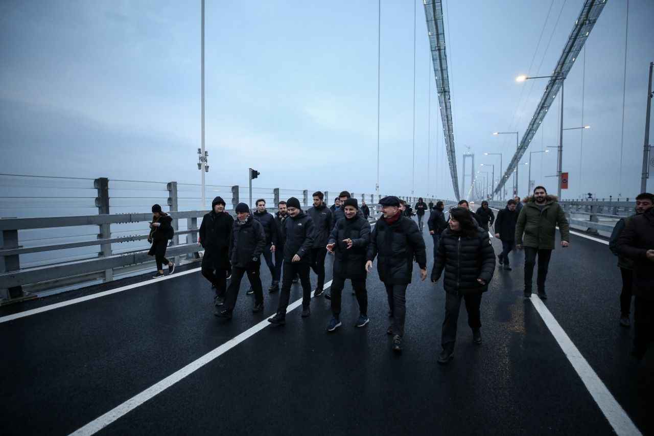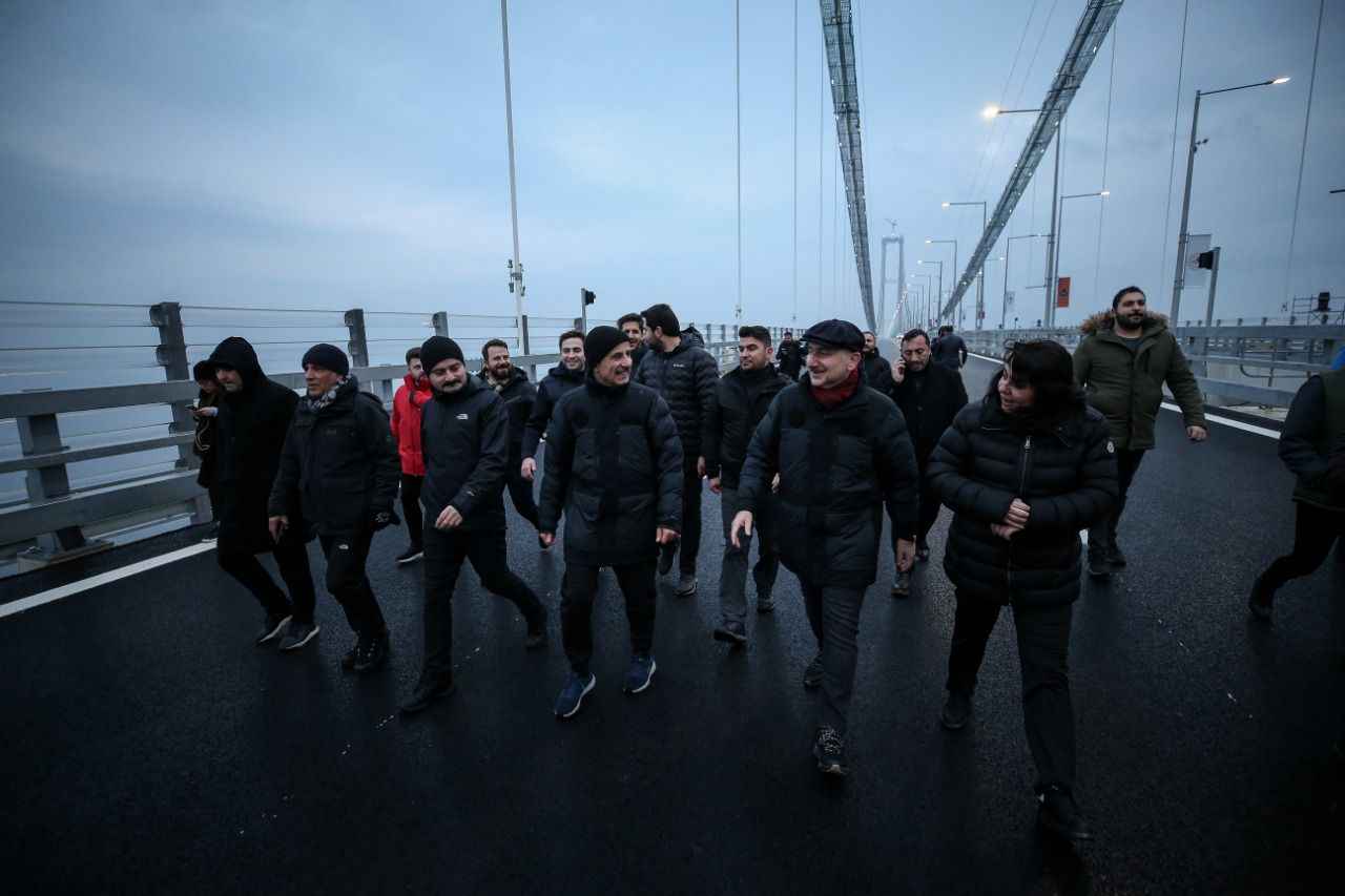 Karaismailoğlu ve beraberindeki heyet daha sonra köprüden yürüyerek Anadolu yakasına ulaştı.