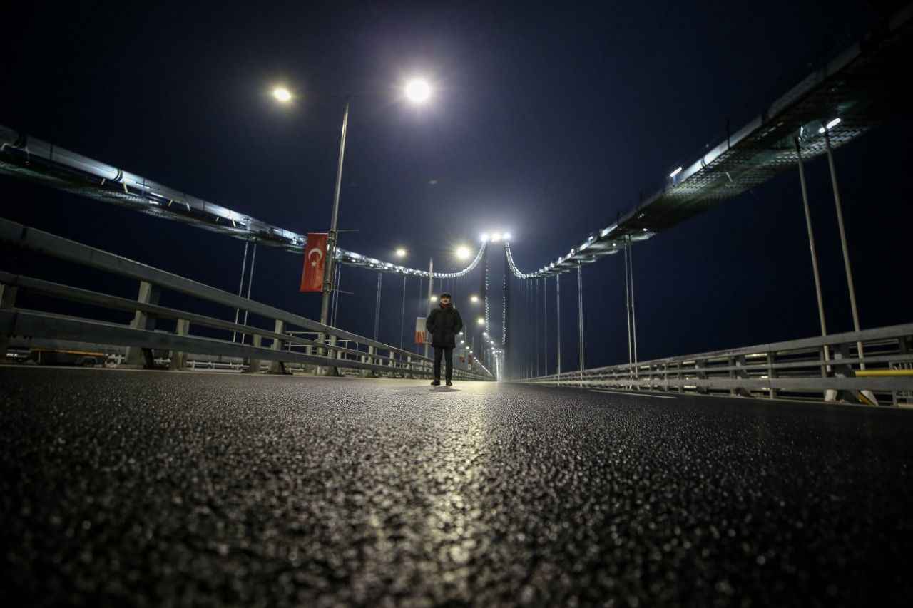 AK Parti Çanakkale Milletvekili Jülide İskenderoğlu ve beraberindekilerle Avrupa yakasından yürüyüşe başlayan Karaismailoğlu, köprünün ortasına geldiğinde gün doğumu gerçekleşti.