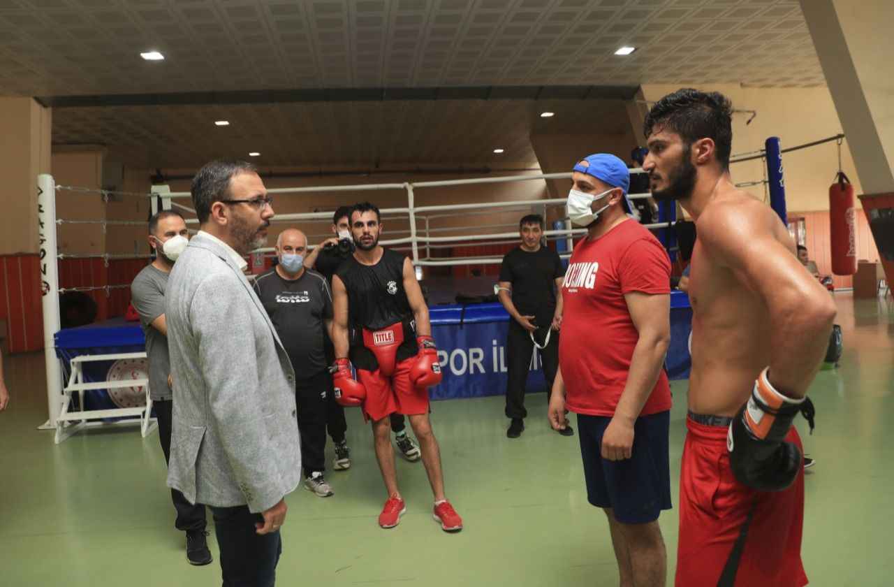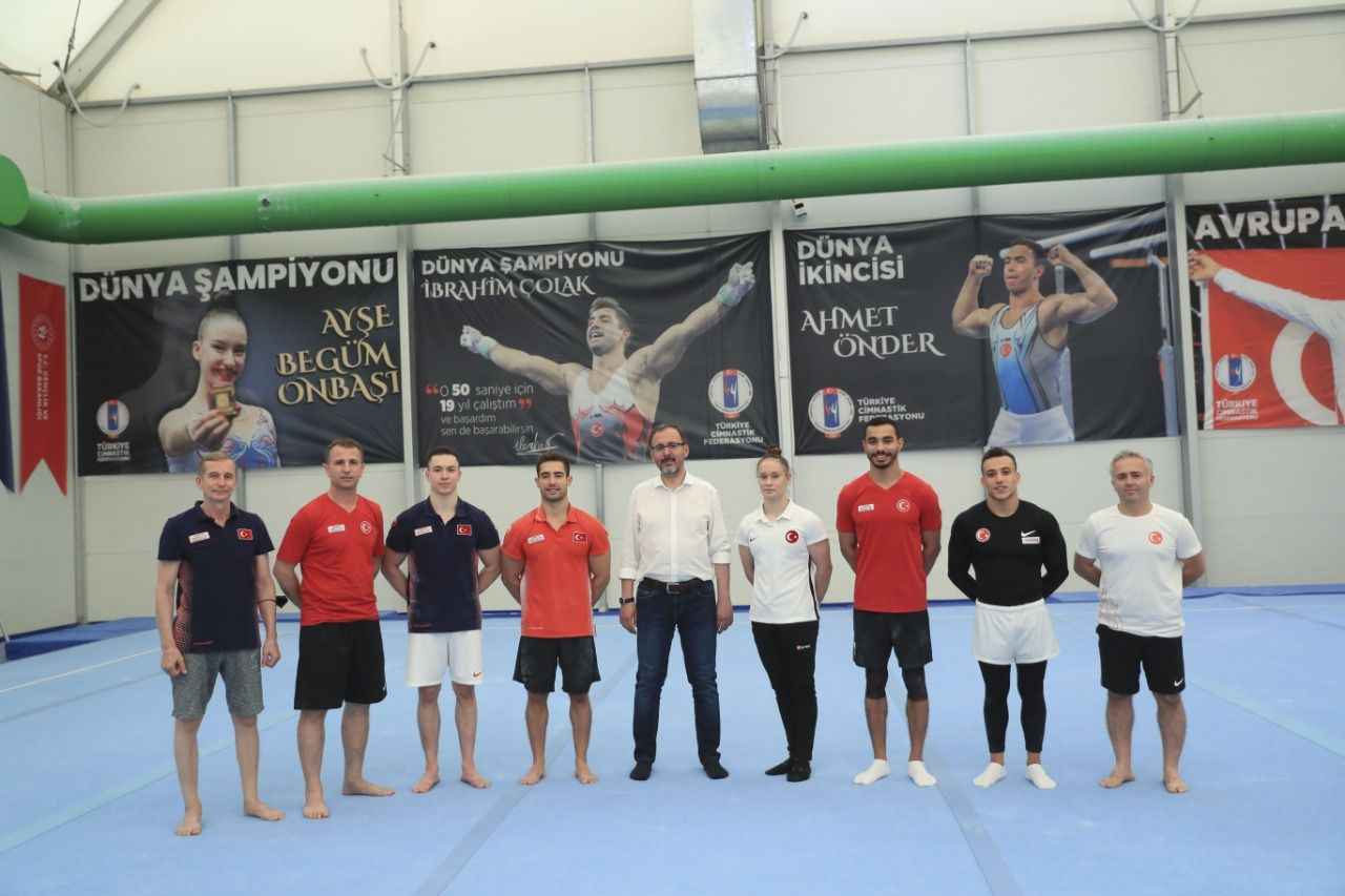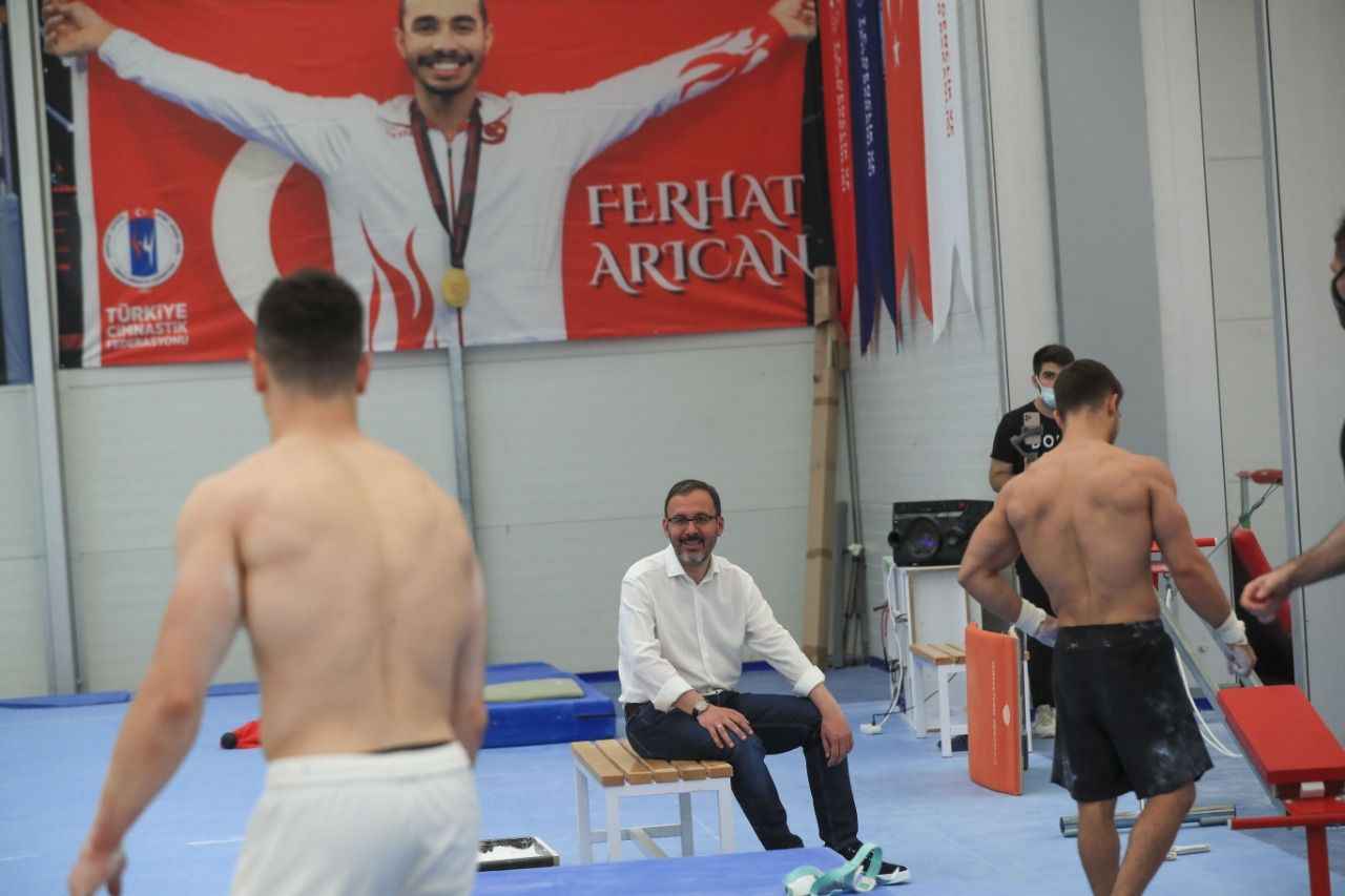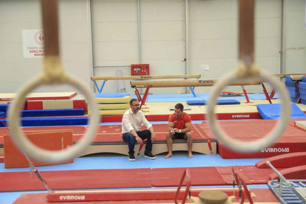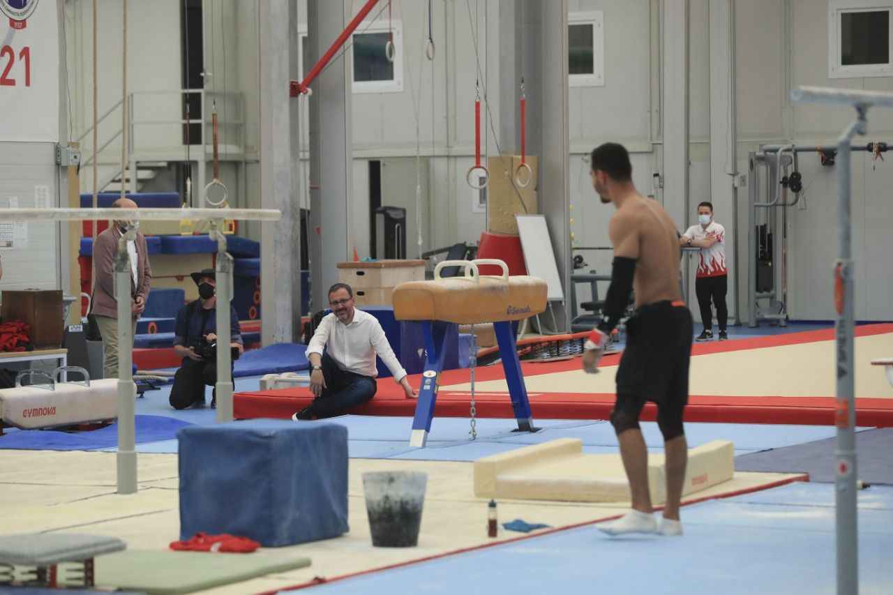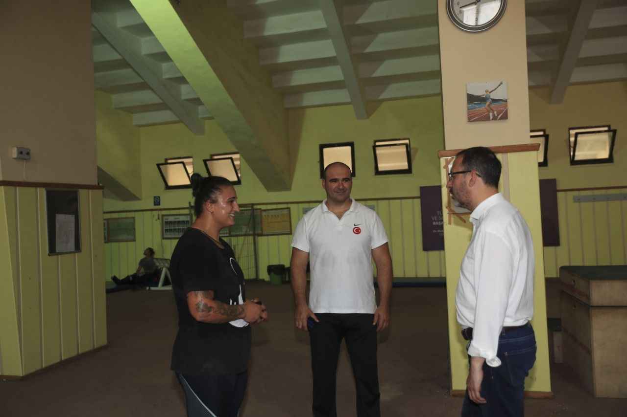 Milli sporcularla sohbet eden Bakan Kasapoğlu, olimpiyat hazırlıkları hakkında bilgi alıp, antrenmanları izledi.