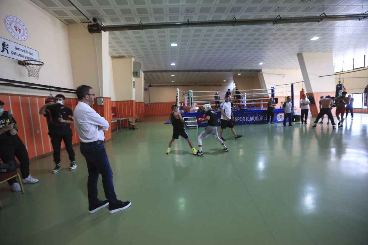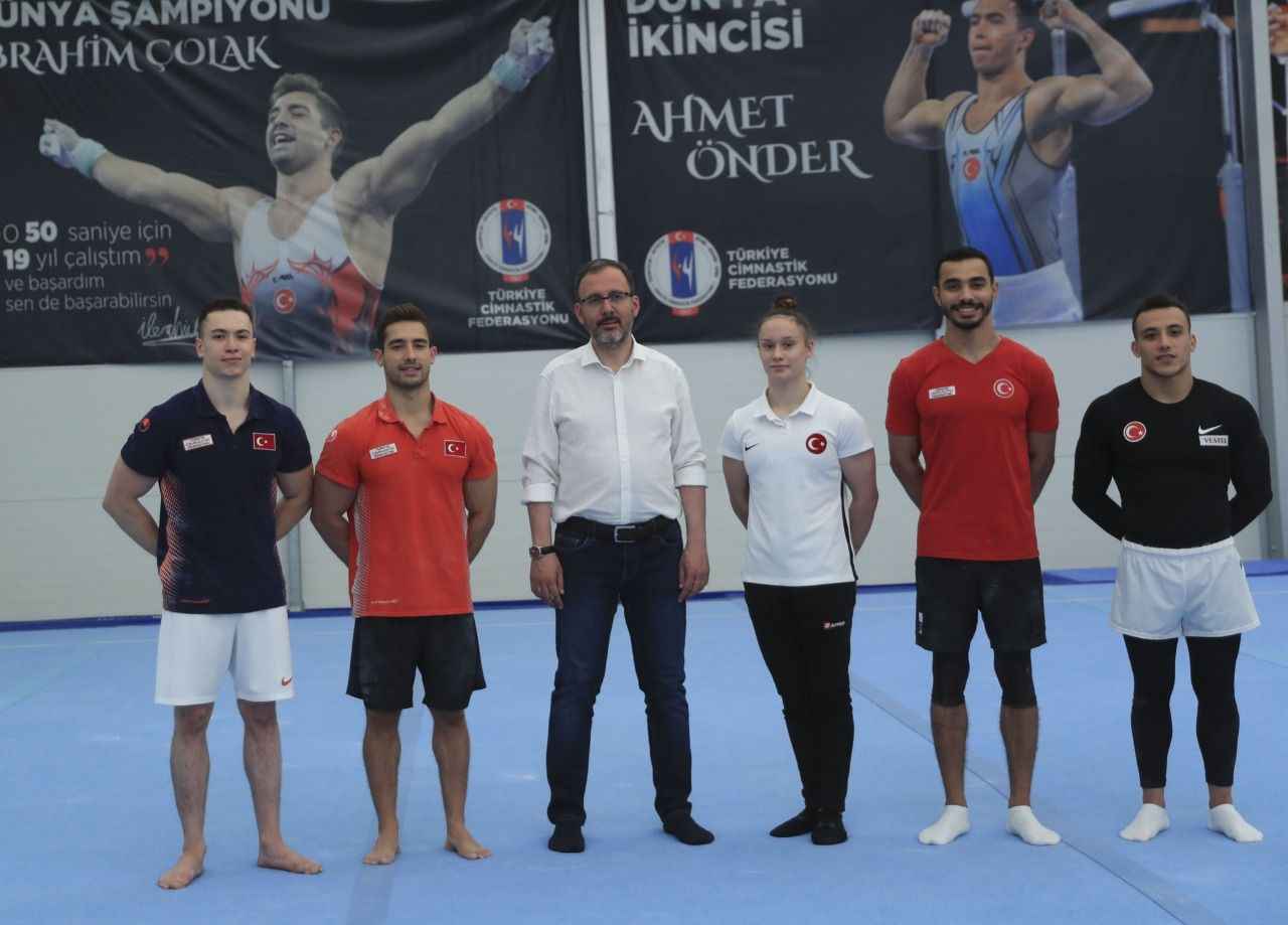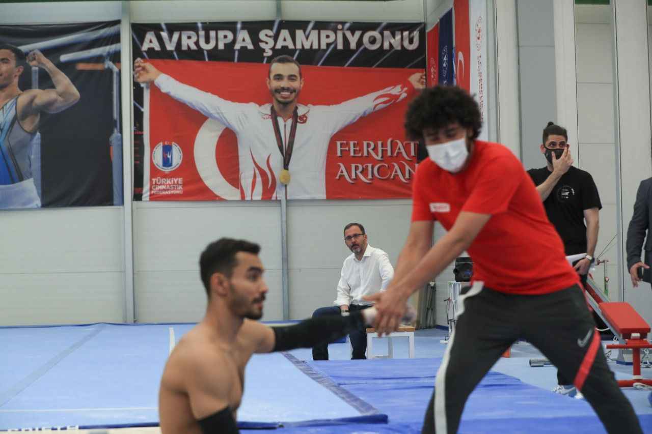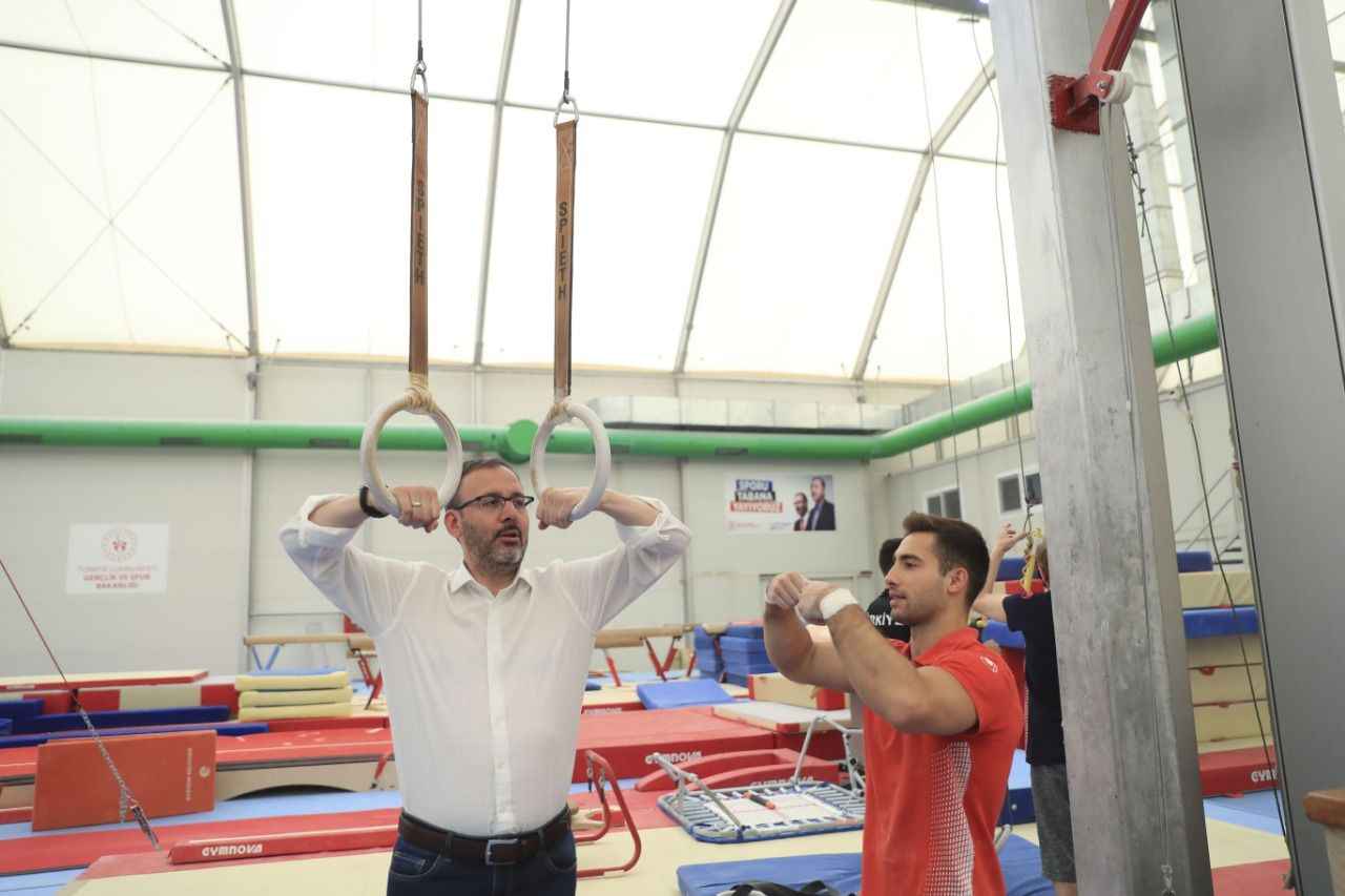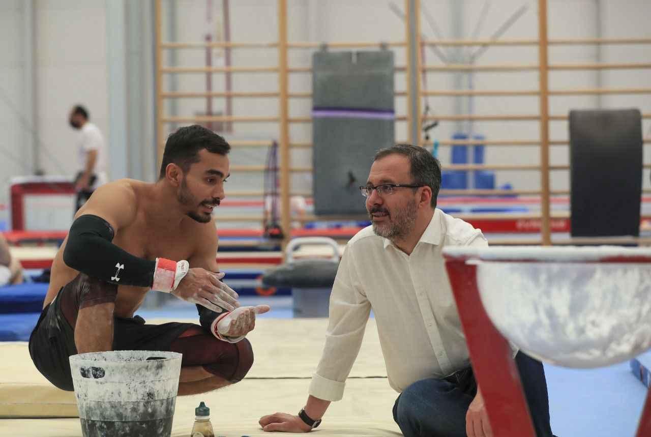Milli sporcularla sohbet eden Bakan Kasapoğlu, olimpiyat hazırlıkları hakkında bilgi alıp, antrenmanları izledi.