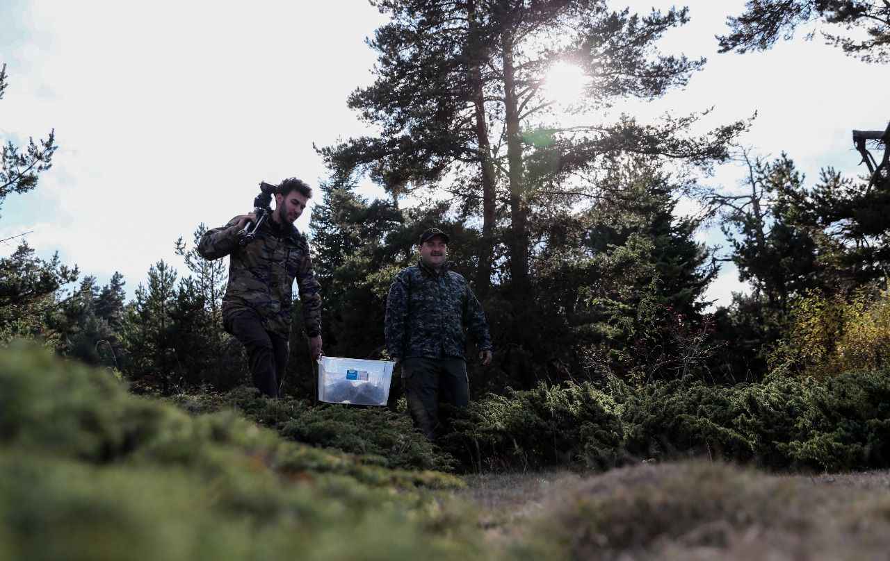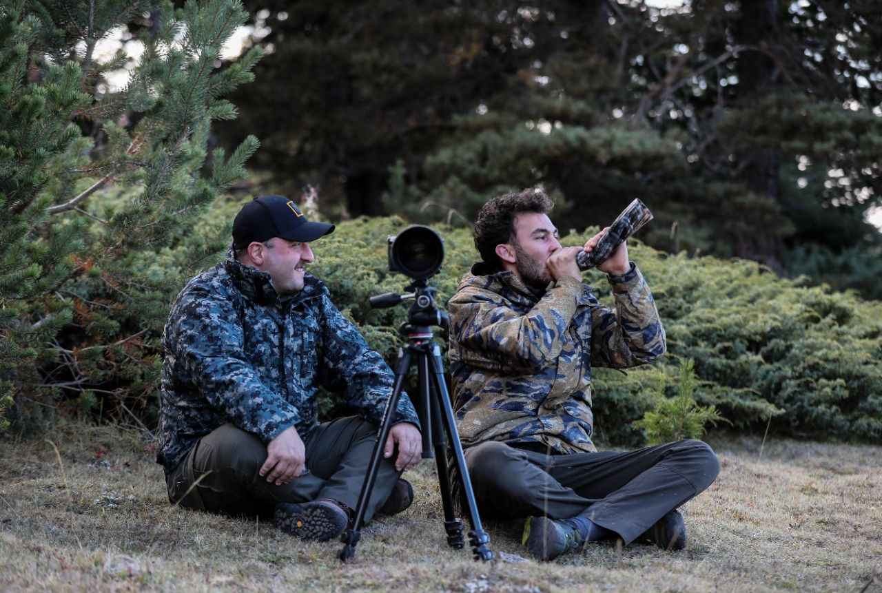 Tuzlamanın ardından Vural, erkek geyiklerin sesine karşılık vererek gelmesini sağlayan boruyu öttürerek onları çağırıyor. Varank, bu sırada "Geyikten daha iyi." esprisi yapıyor.