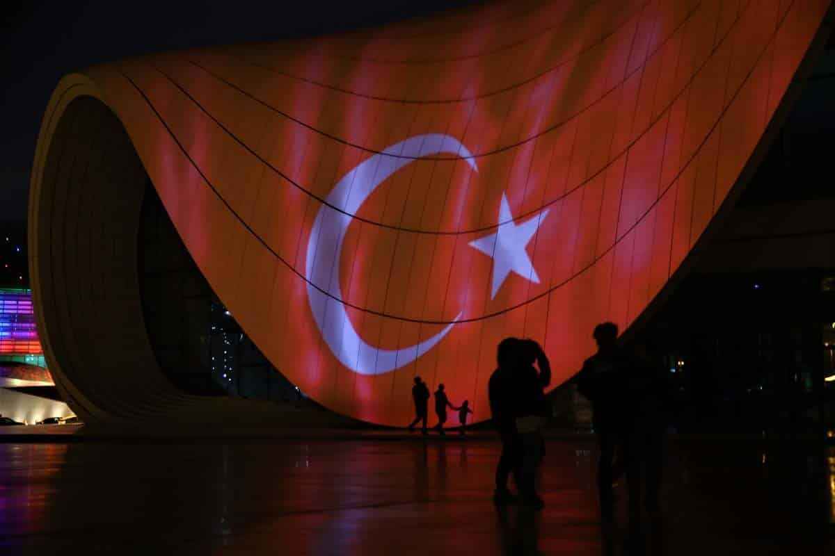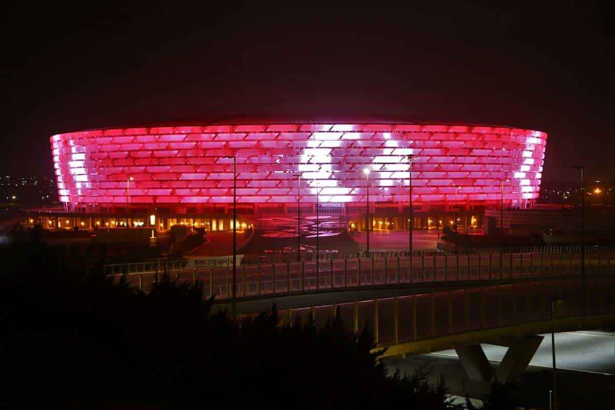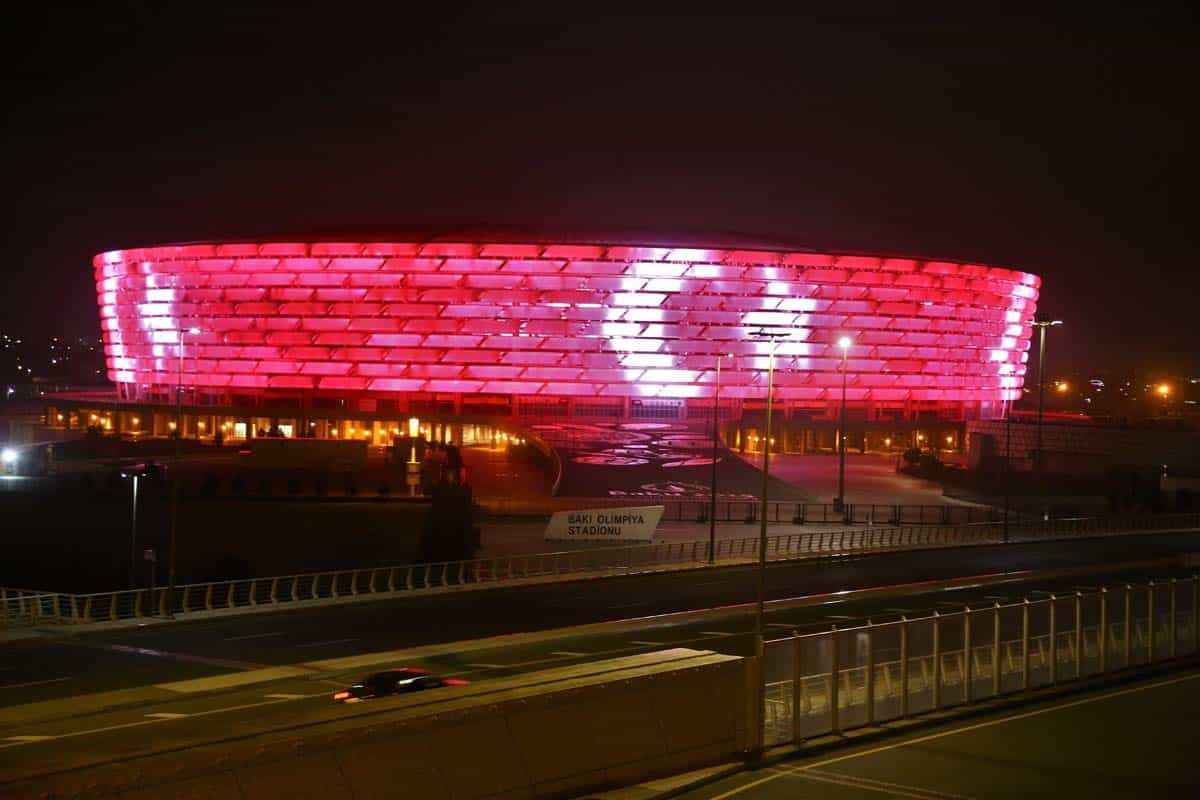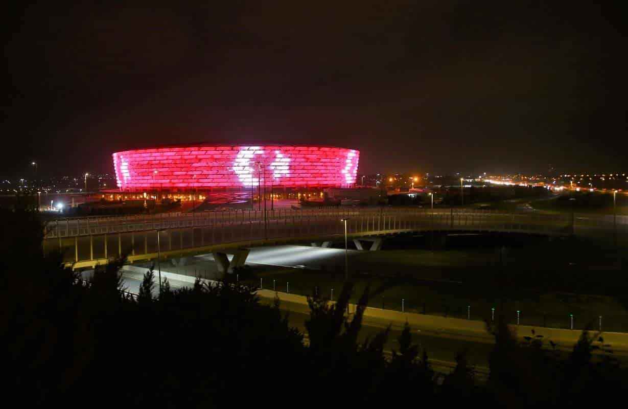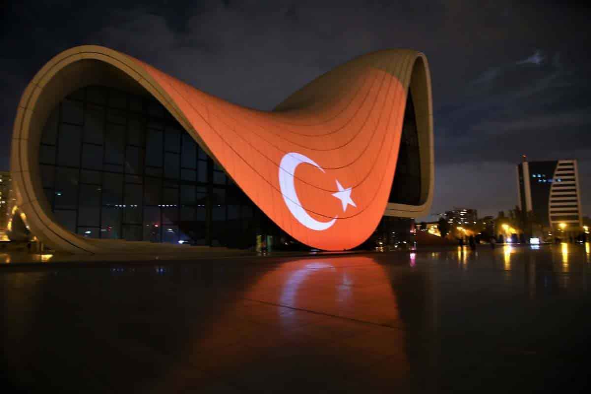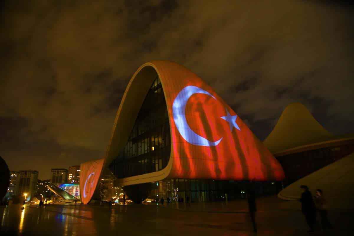 29 Ekim Cumhuriyet Bayramı dolayısıyla Türk bayrağı yansıtılan Bakü Olimpik Stadı ve Haydar Aliyev Merkezi'nden Türk müzikleri de seslendirildi.