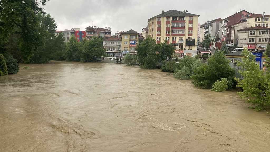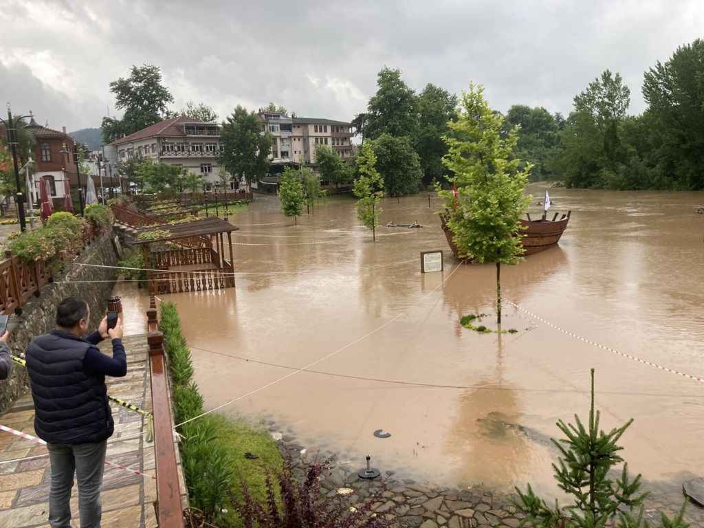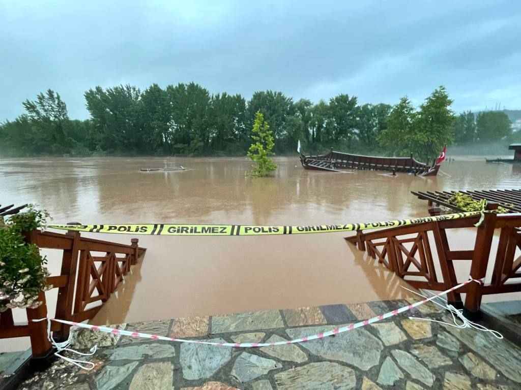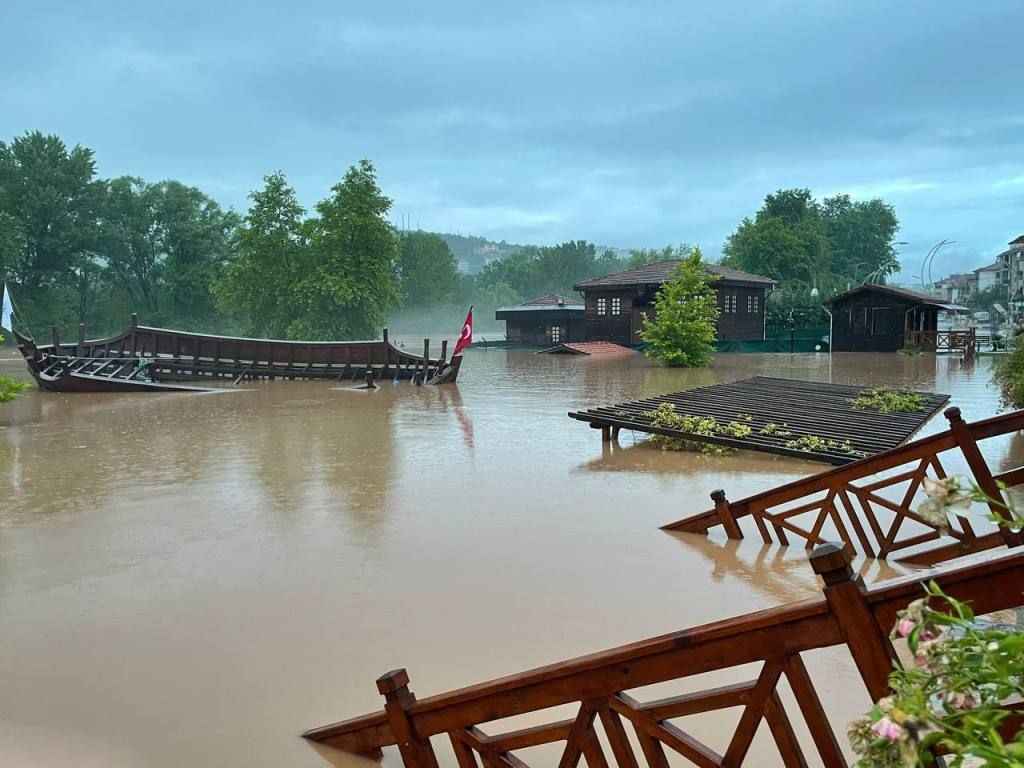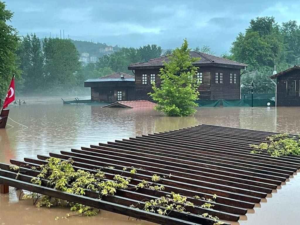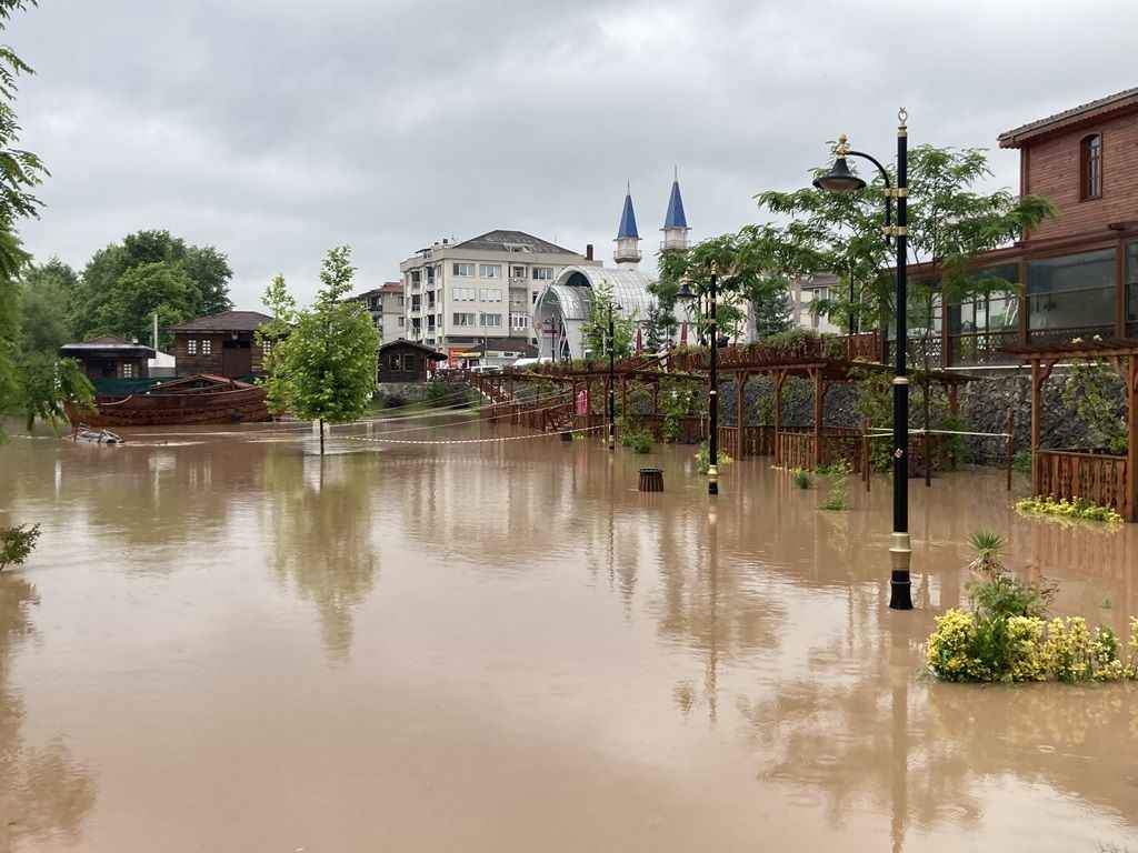 Bartın'da sağanak hayatı olumsuz etkiliyor. Bartın Nehri'nin taşması sonucu kent merkezinde park ve yürüyüş alanları sular altında kaldı.