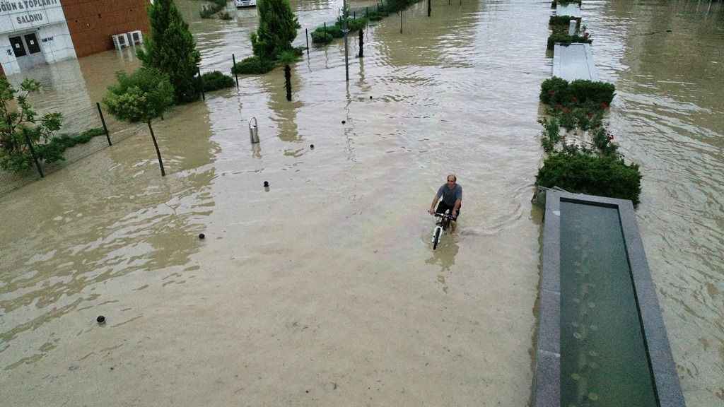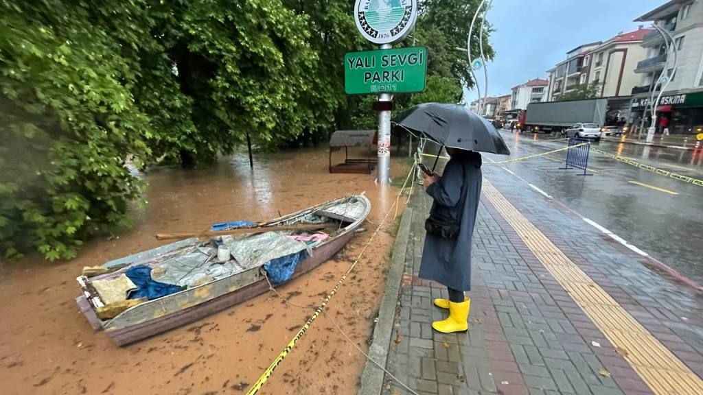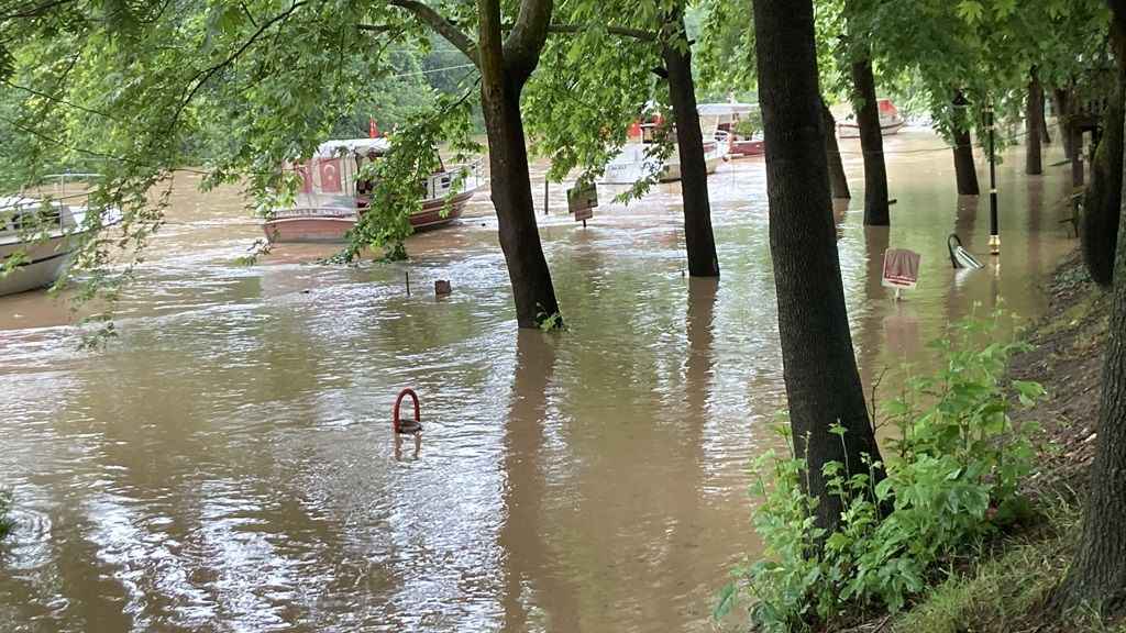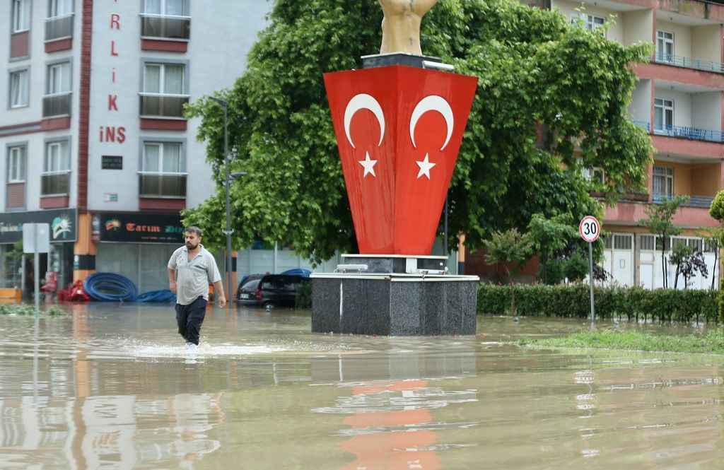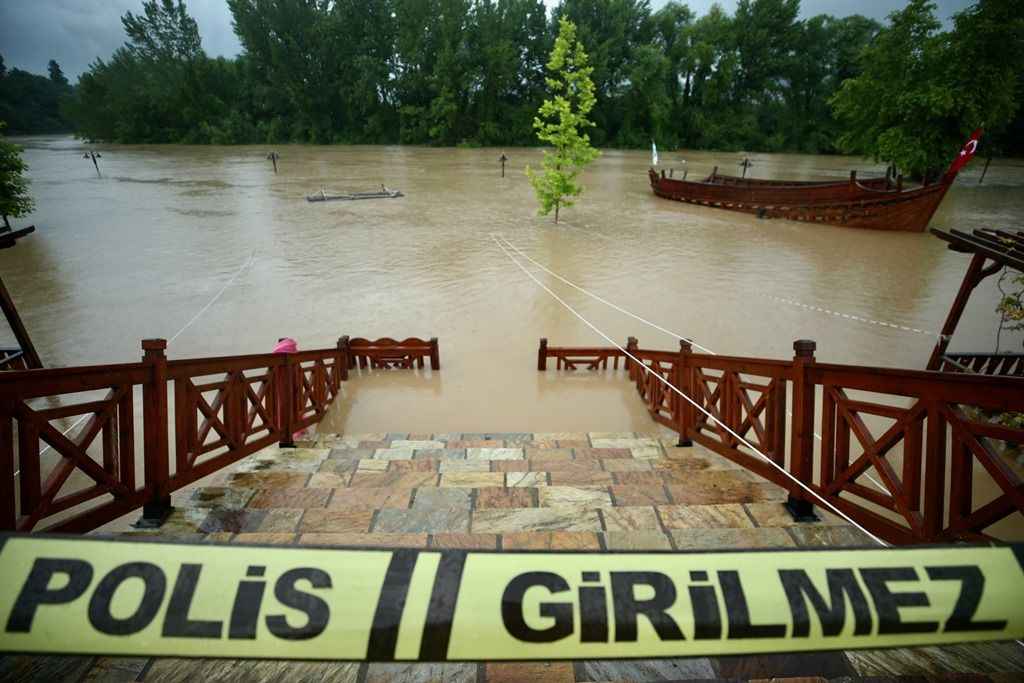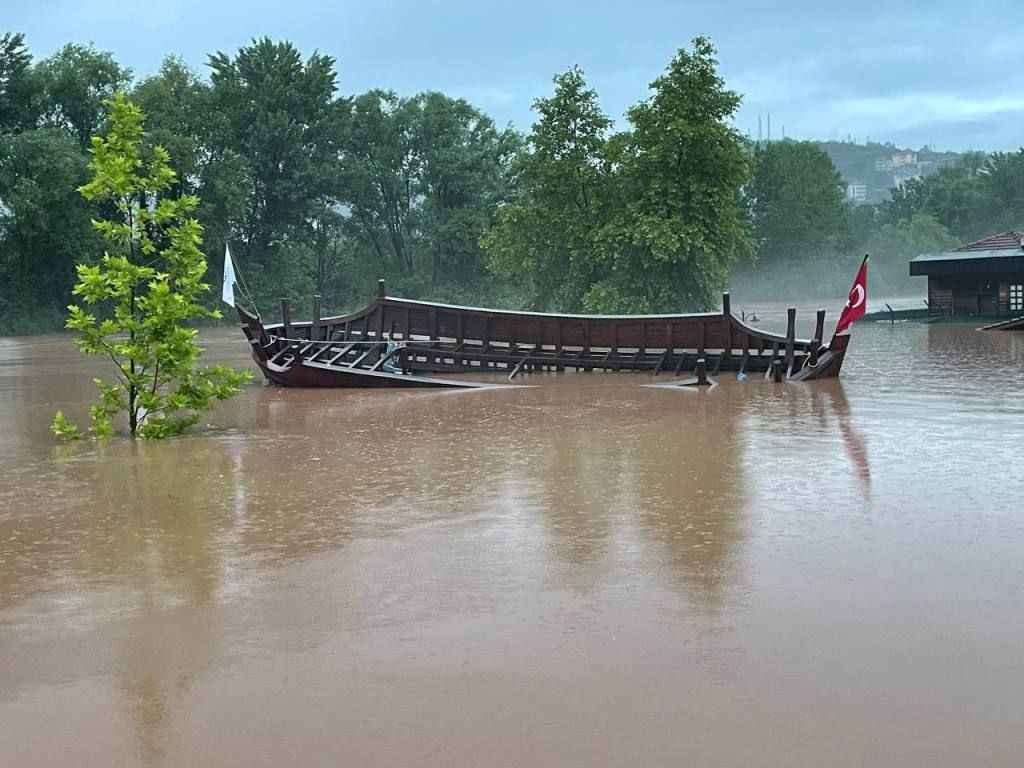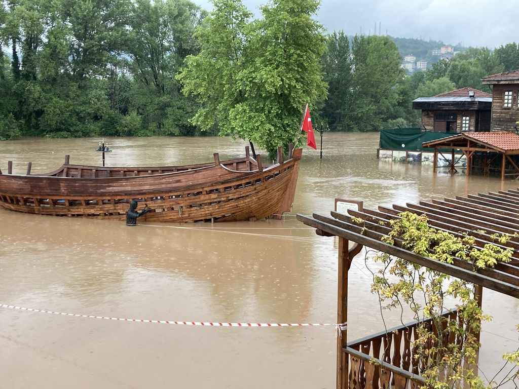 Bartın'da sağanak hayatı olumsuz etkiliyor. Bartın Nehri'nin taşması sonucu kent merkezinde park ve yürüyüş alanları sular altında kaldı.