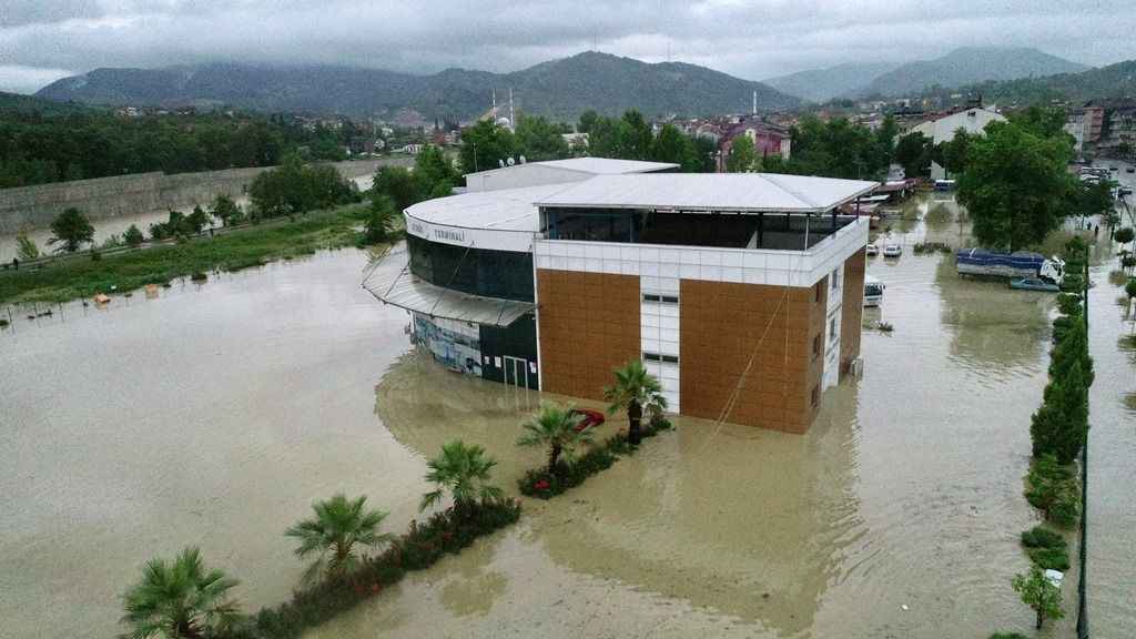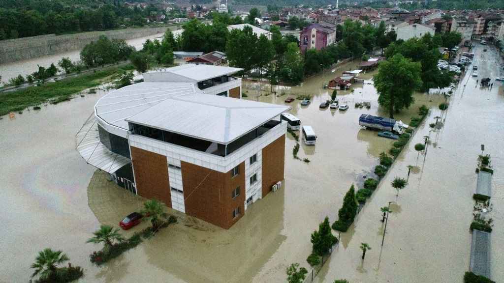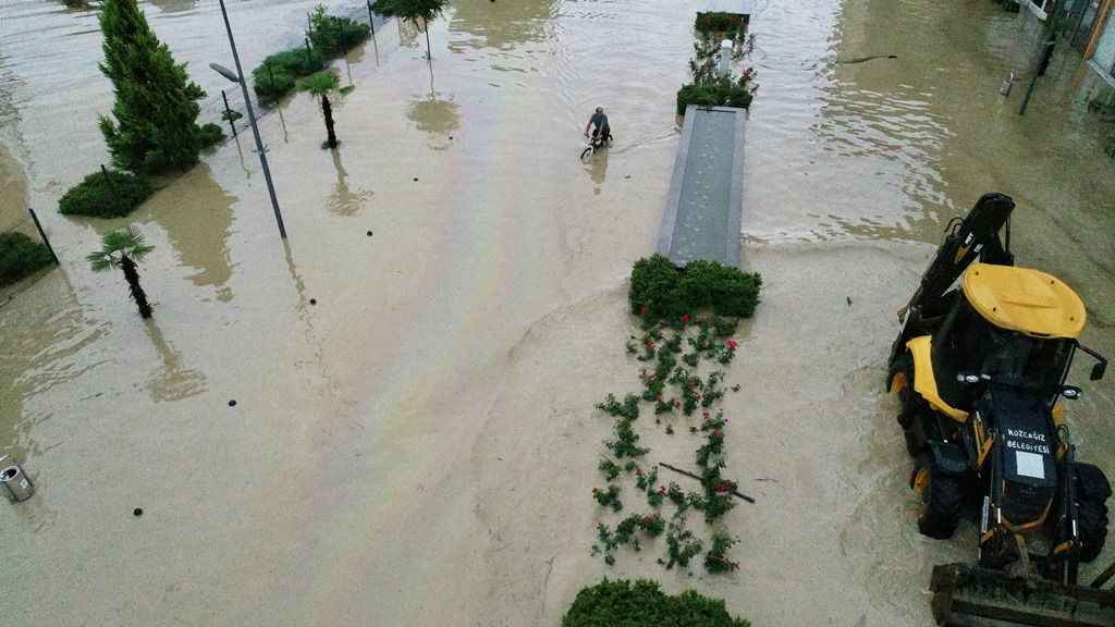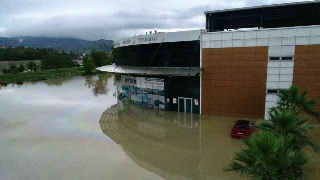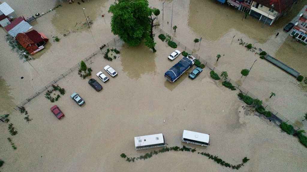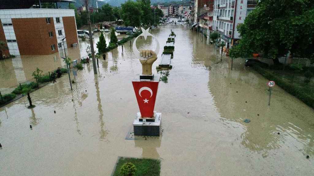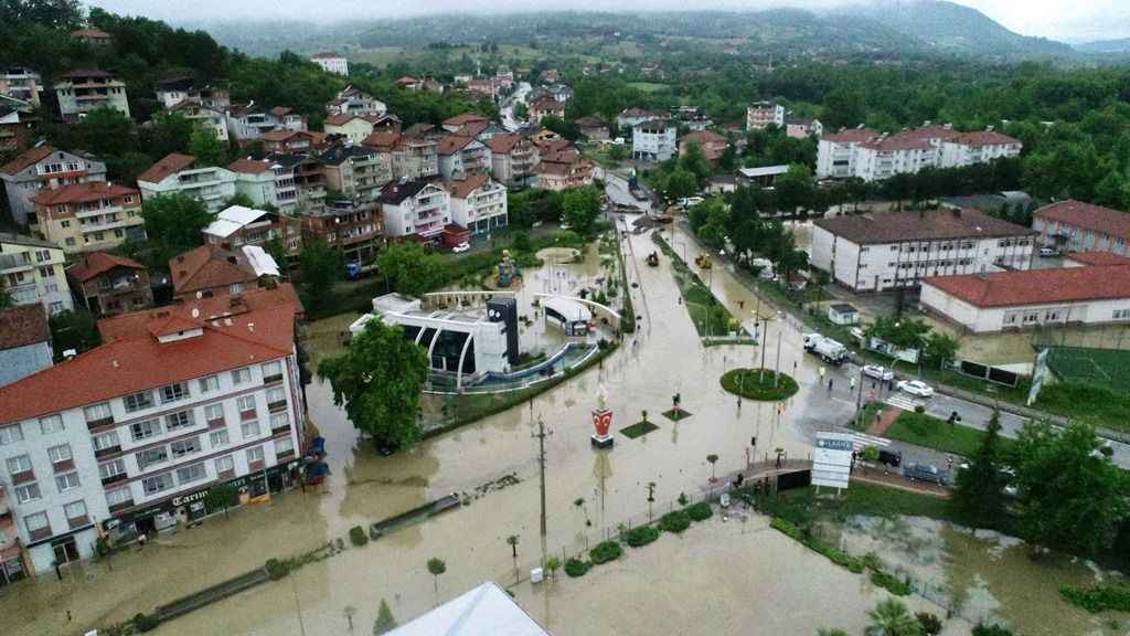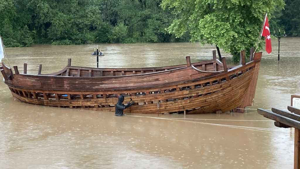 Bartın'da sağanak hayatı olumsuz etkiliyor. Bartın Nehri'nin taşması sonucu kent merkezinde park ve yürüyüş alanları sular altında kaldı.