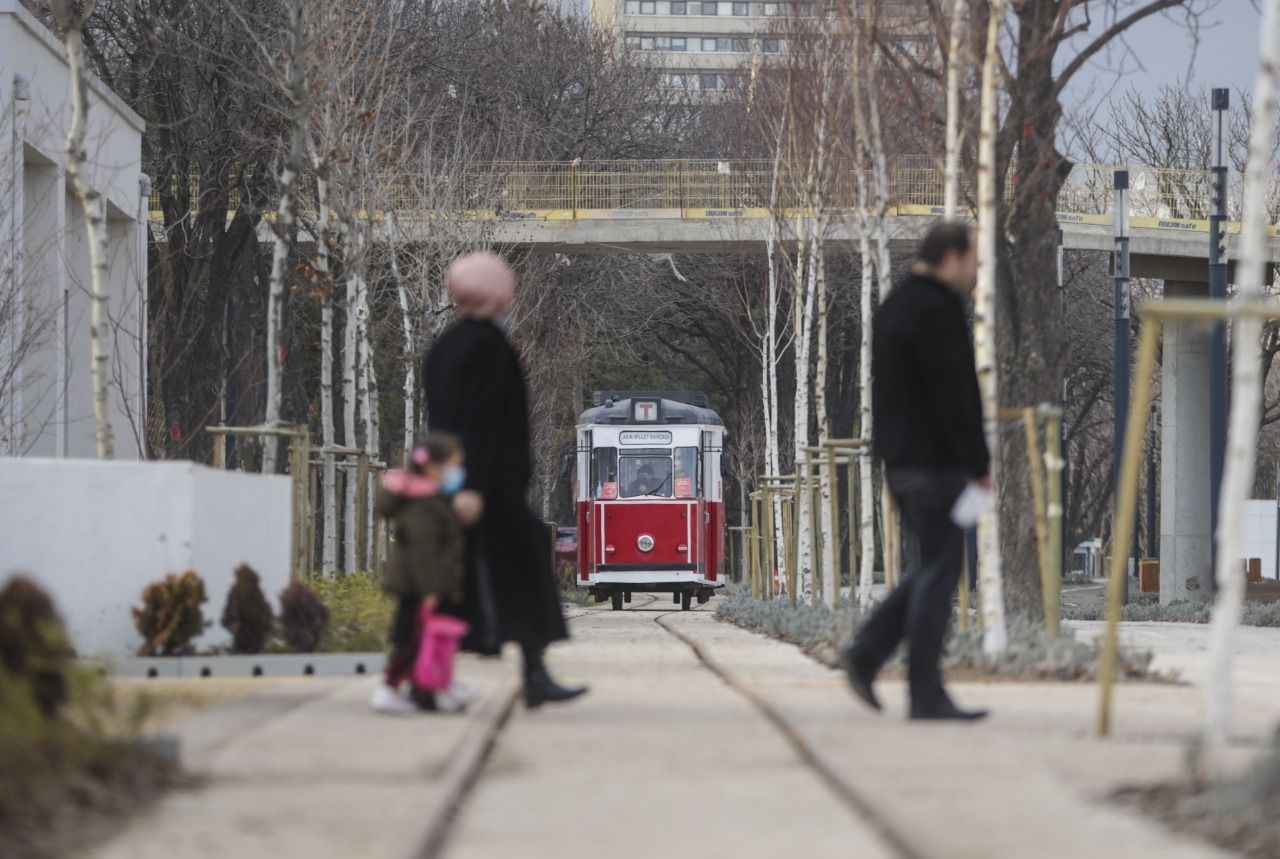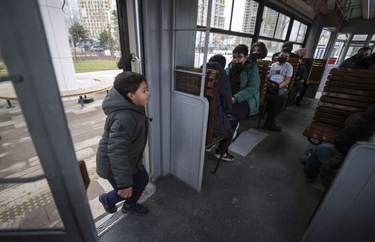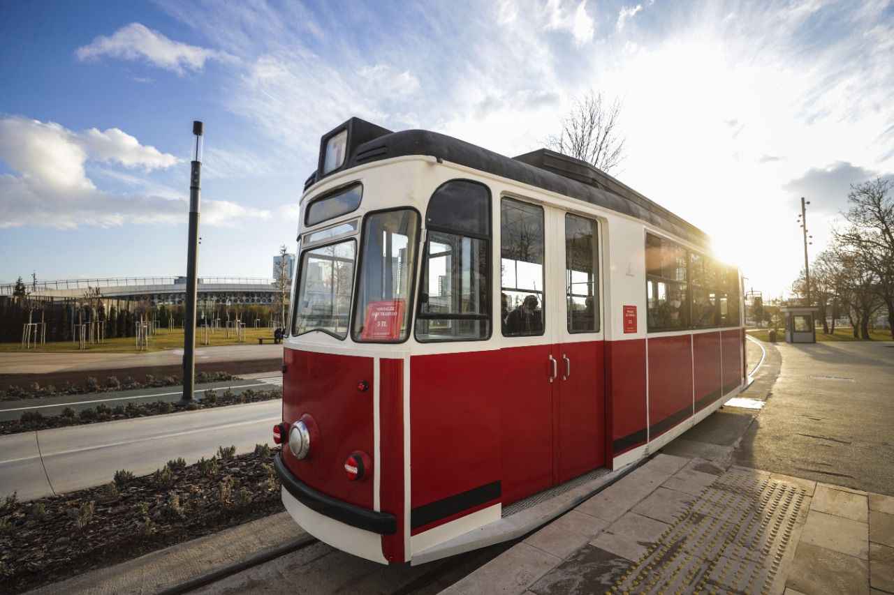 Dış rengi kırmızı içi de ahşap oturaklardan oluşan tramvay, Ankaralıları bir yandan zamanda yolculuğa çıkarırken diğer yandan yeşilin her tonunun görüldüğü peyzaj düzenlemeleriyle dikkati çeken Millet Bahçesi'ni gezme imkanı sunuyor.