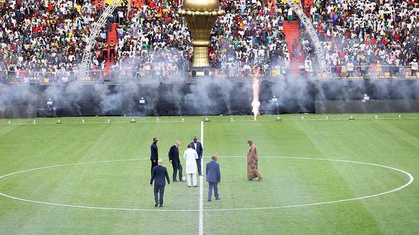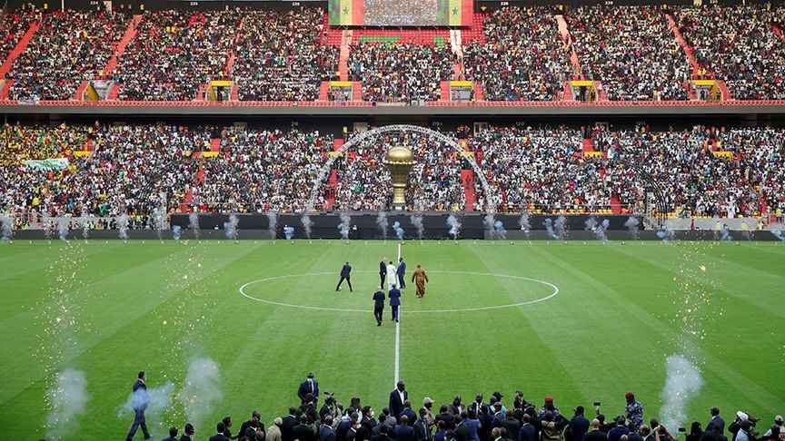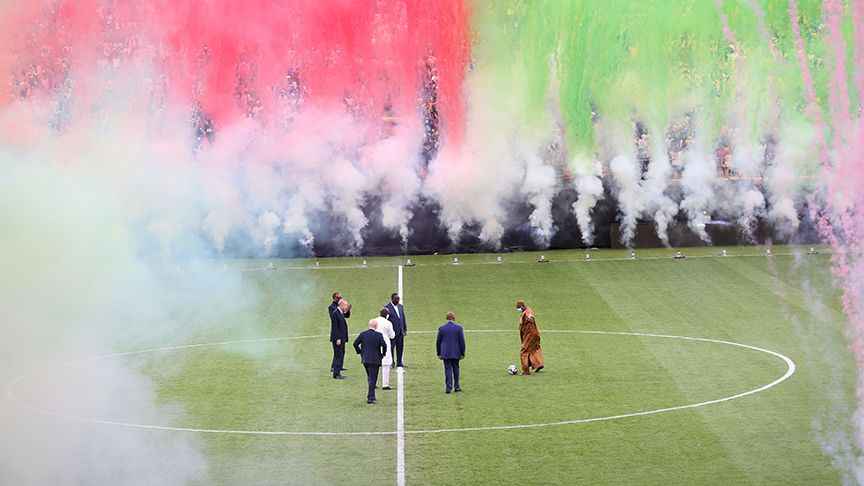 Cumhurbaşkanı Erdoğan ve diğer konuk devlet başkanları açılışı yapmak üzere stat zeminine davet edildi. Sahaya çıkarken bazı futbolcularla sohbet eden Erdoğan, daha sonra orta sahada Sall ve diğer devlet başkanlarıyla pas yaptı.