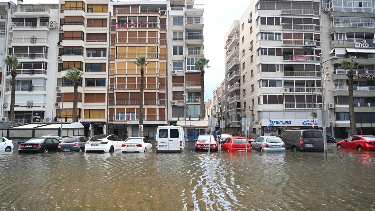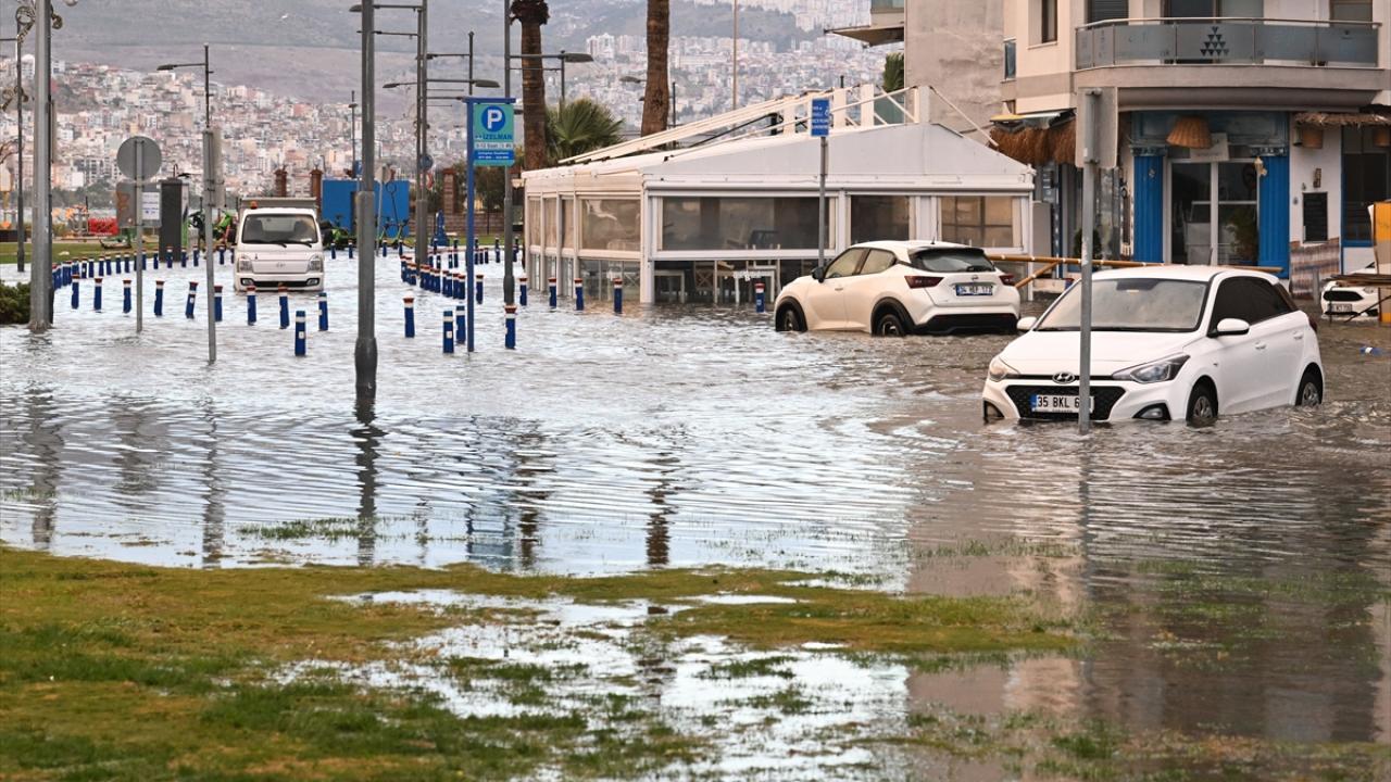 İzmir`in Karşıyaka ve Konak ilçelerinde yoğun yağışın ardından denizin taşması sonucu yollar su altında kaldı, çok sayıda iş yeri, apartman ve dükkanı su bastı.