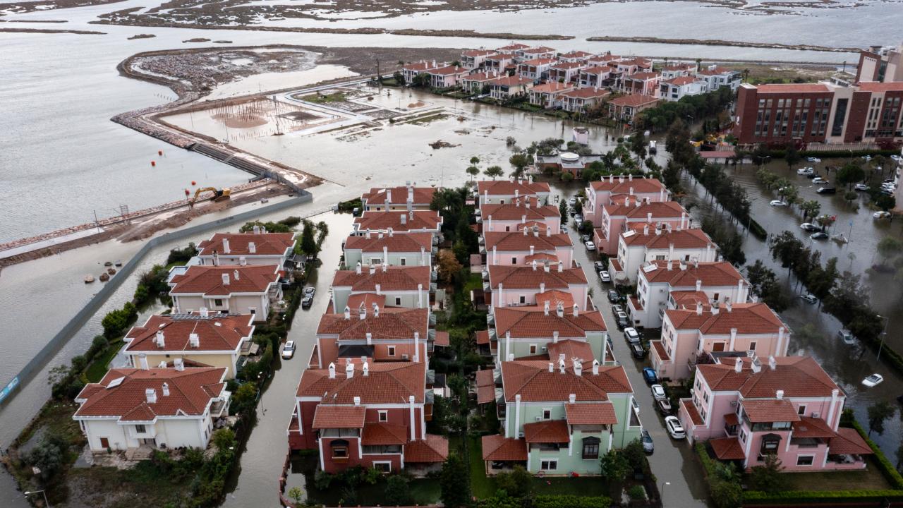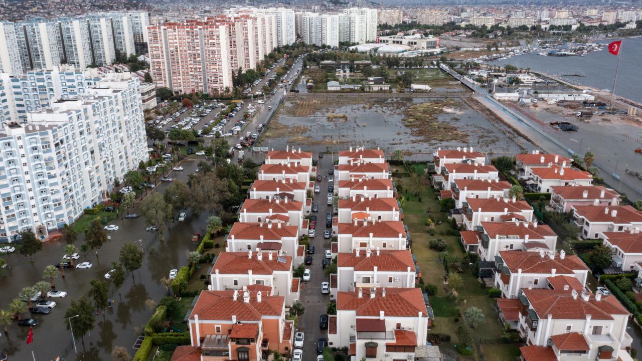 Sahildeki sitelerin bahçeleri suyla dolarken, cadde ve sokaklar da sular altında kaldı.