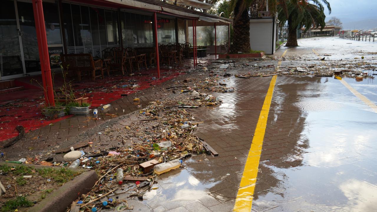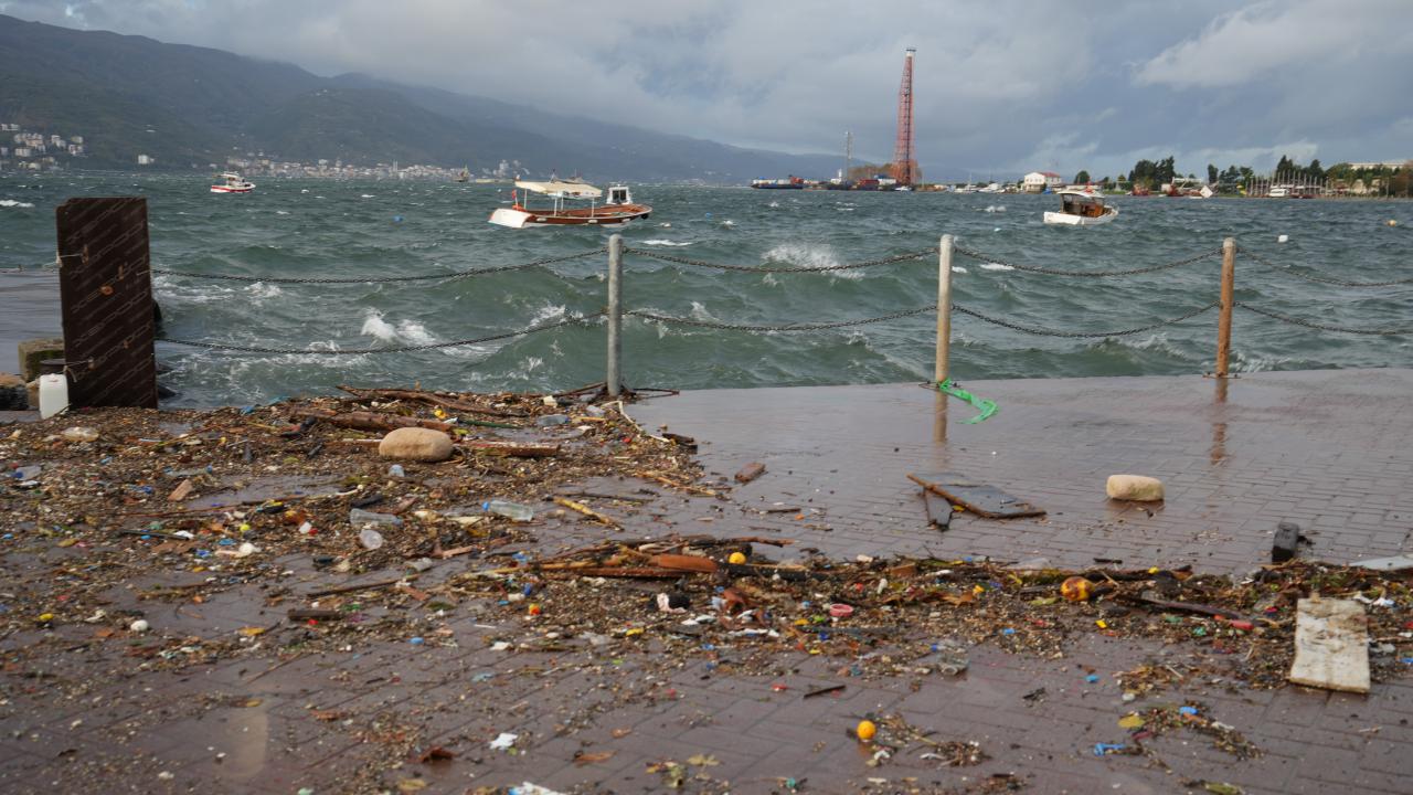 Etkili olan rüzgarda sahil boyu çöple doldu.