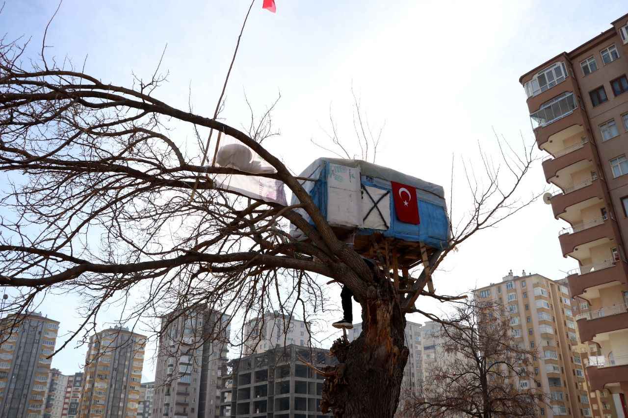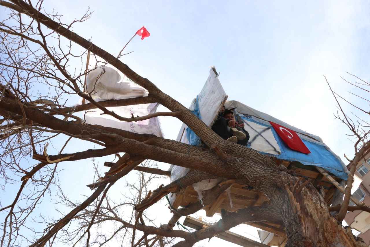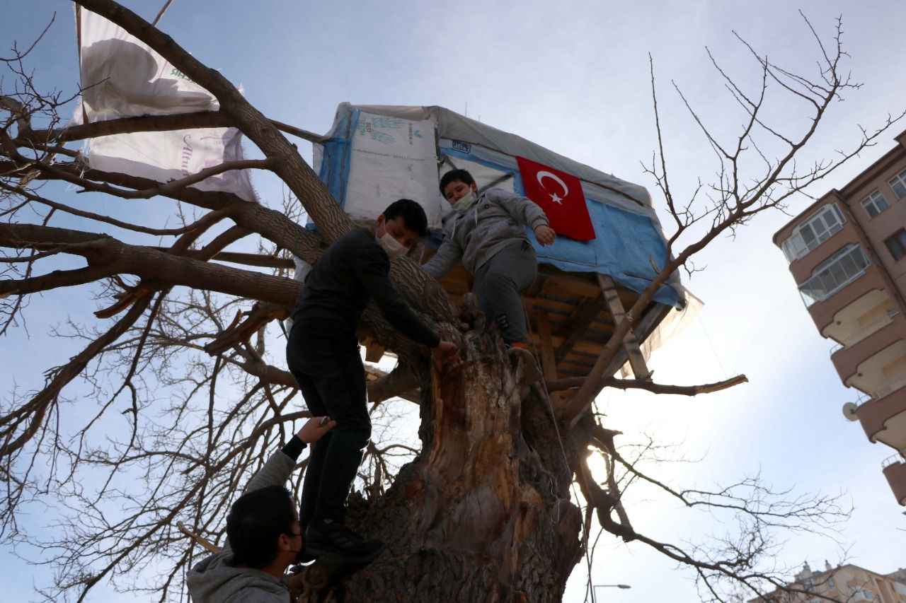 Bunun için mahalledeki boş arazide kuruyan bir ağacı seçtiklerini anlatan Aşık, "Beraber toplanıp bir şeyler yapmaya karar verdik. Mahallemizdeki ağabeylerimiz de bize yardım etti. Palet verdiler, ağaç evi beraber yaptık. İki haftalık sürede tamamladık." diye konuştu.