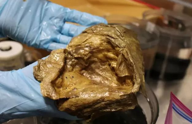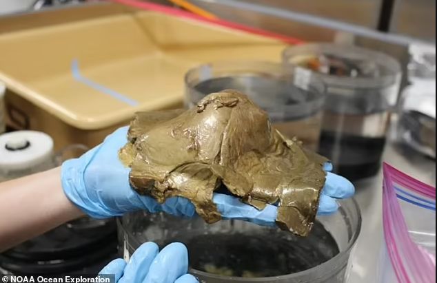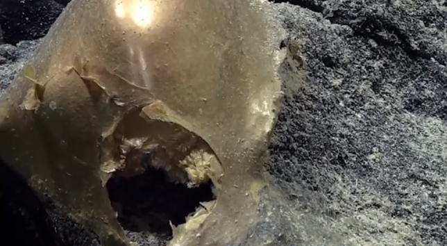 Gizemli nesnenin kökeninin nereden geldiği henüz bilinmiyor fakat bilim insanları altın renkli cismin cismin bir çeşit yumurta kabuğu ya da deniz süngeri kalıntısı olabileceğini tahmin ediyor. NOAA, nesnenin cilt dokusuna benzer şekilde dokunulduğunda yumuşak ve hassas olduğunu belirtti.