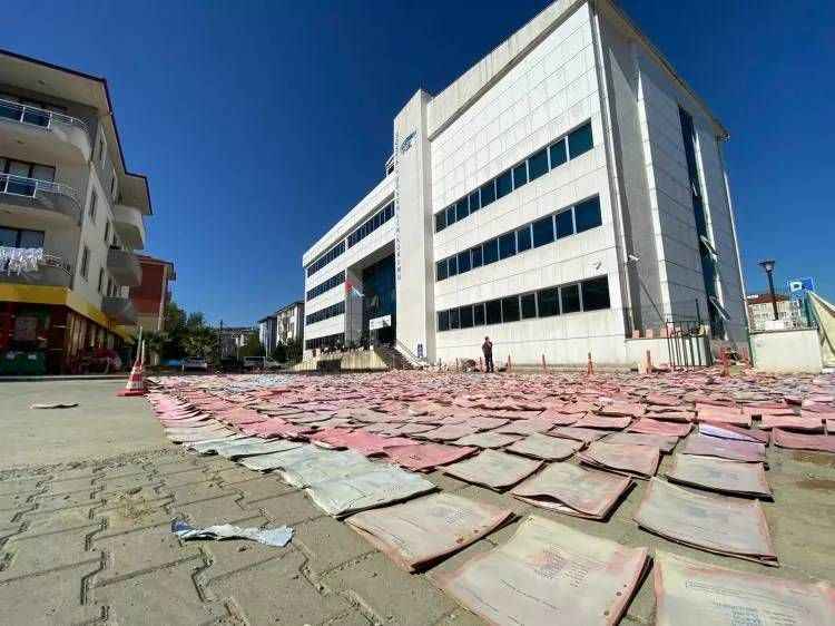 Yaklaşık 50 yıldır bekletilen 70 bin işveren, işçi ve emekli dosyası bodrum kattaki arşiv odalarında su altında kaldı. Sel suları ve balçıkla kaplanan dosyalar kurum personeli tarafından temizlendi. Kurum önündeki alana el arabasıyla taşınan dosyalar, tek tek yere serilerek, güneşte kurumaya bırakıldı.