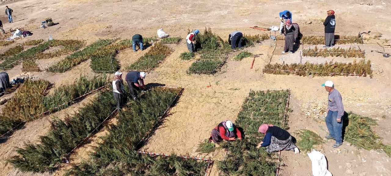 Yamaçtaki kayaların temizlenmesiyle başlayan çalışmada, Ereğli, Olcay, Altınapa ve Seydişehir orman fidanlıklarından getirilen 15 bin altuni mazı ve 53 bin doğu mazısı 15 günde toprakla buluşturuldu.