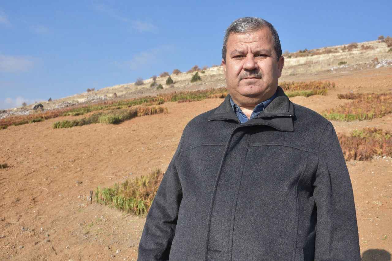 Ay yıldız ile yazının 616 noktadan araziye uygulandığını anlatan Bal, zemine kırmızı toprak serildiğini, fidanların belirlenen noktalara tek tek dikildiğini belirtti.