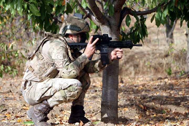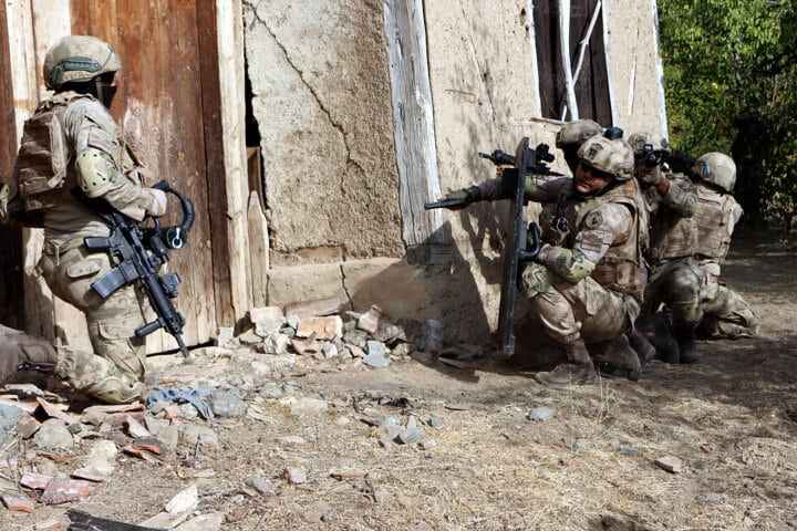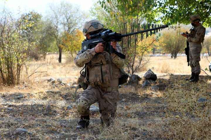 Aselsan'ın ürettiği dronsavarın da kullanıldığı tatbikatta, komandolar baskın yapacakları evin çevresine sızıp bölgeyi kontrol altına aldı.
