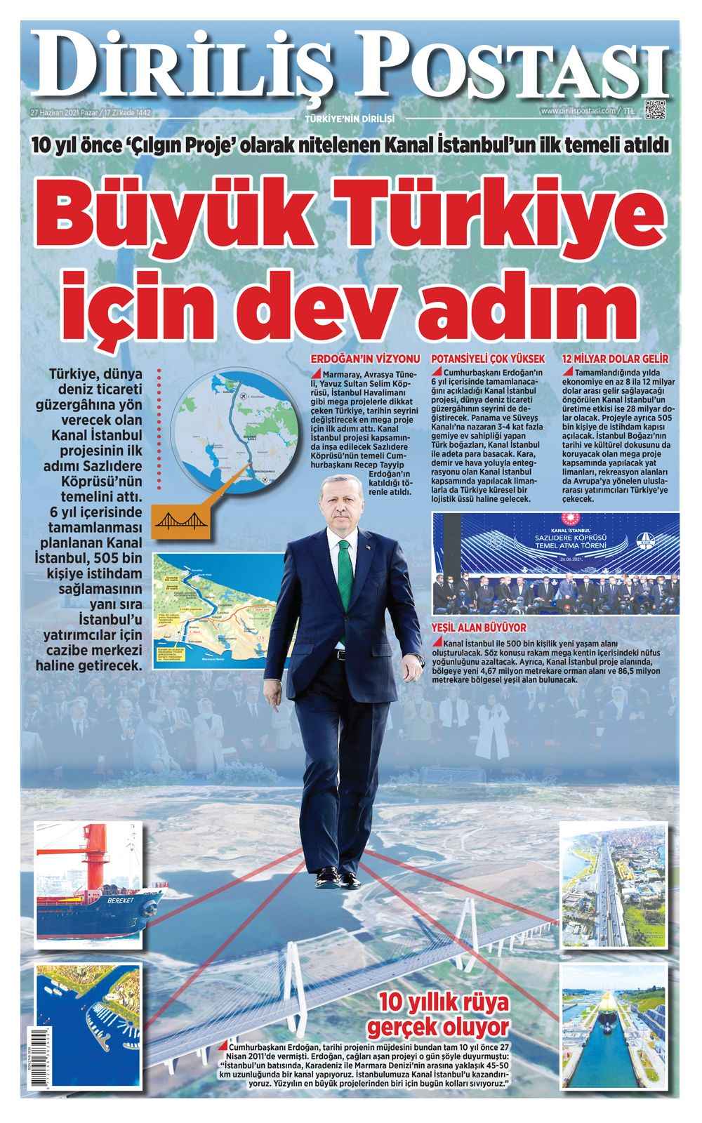 Cumhurbaşkanı Erdoğan, tarihi projenin müjdesini bundan tam 10 yıl önce 27 Nisan 2011’de vermişti. Erdoğan, çağları aşan projeyi o gün şöyle duyurmuştu: “İstanbul’un batısında, Karadeniz ile Marmara Denizi’nin arasına yaklaşık 45-50 km uzunluğunda bir kanal yapıyoruz. İstanbulumuza Kanal İstanbul’u kazandırıyoruz. Yüzyılın en büyük projelerinden biri için bugün kolları sıvıyoruz.”
