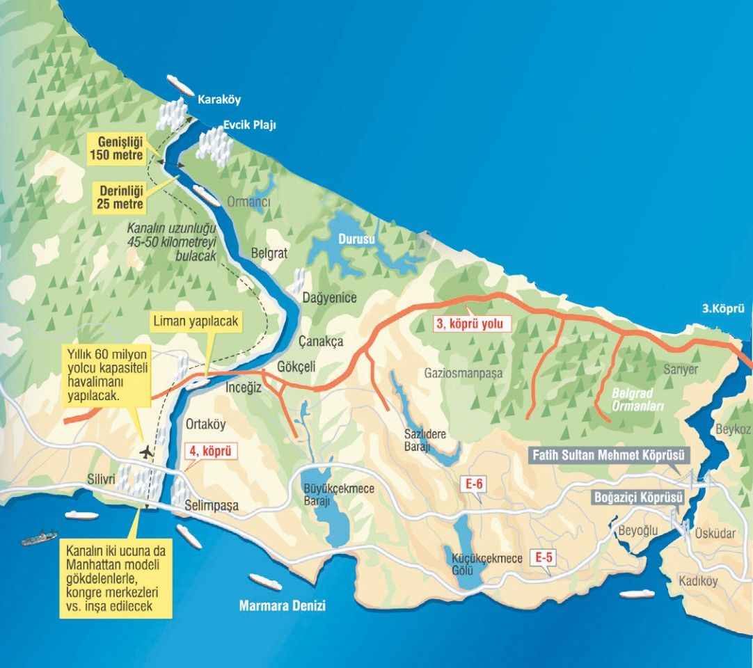 Cumhurbaşkanı Erdoğan’ın 6 yıl içerisinde tamamlanacağını açıkladığı Kanal İstanbul projesi, dünya deniz ticareti güzergâhının seyrini de değiştirecek. Panama ve Süveyş Kanalı’na nazaran 3-4 kat fazla gemiye ev sahipliği yapan Türk boğazları, Kanal İstanbul ile adeta para basacak. Kara, demir ve hava yoluyla entegrasyonu olan Kanal İstanbul kapsamında yapılacak limanlarla da Türkiye küresel bir lojistik üssü haline gelecek.