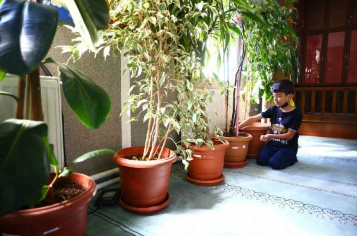 Camide, 300'den fazla saksı çiçeği bulunuyor. İmam hatip Ahmet Aydemir, camiyi mahallelilerin ve çocukların daha çok ilgisini çekecek hale getirdiği için mutluluk duyduğunu söyledi.