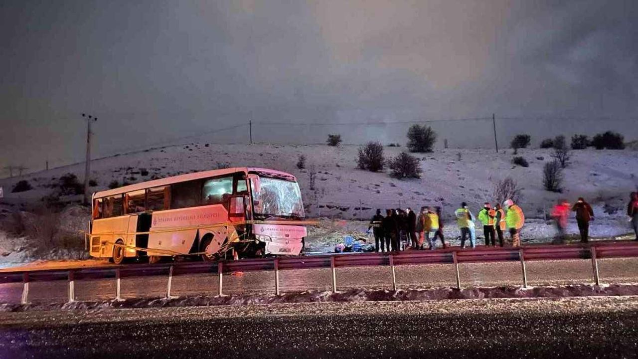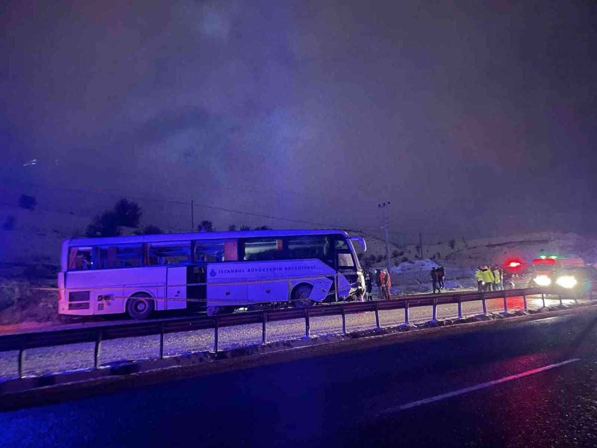 Çankırı D100 Karayolu Kurşunlu ilçesi mevkiinde, İstanbul’da hayatını kaybeden bir vatandaşın cenazesini ve cenaze yakınlarını memleketine ulaştırmak için yola çıkan İstanbul Büyükşehir Belediyesi'ne ait yolcu otobüsü, hafif kar yağışının etkili olduğu yolda devrildi.