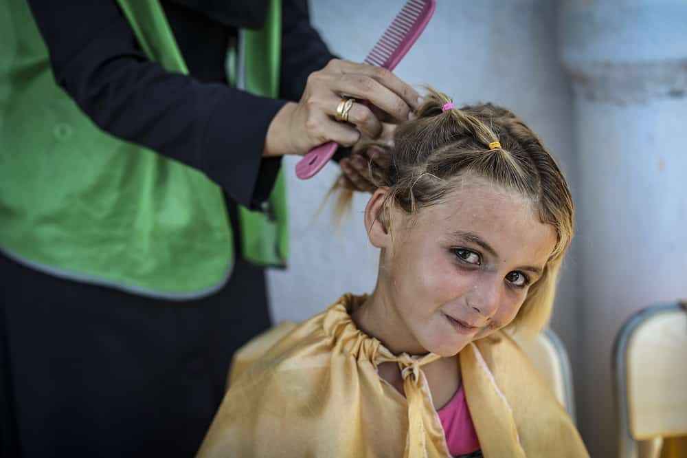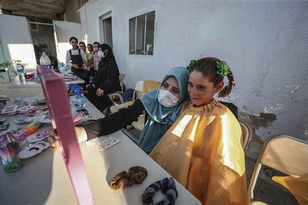 For Children Smile Uluslararası Çocuk Derneği ve İHH İnsani Yardım Vakfı, Fırat Kalkanı Harekatı ile terörden arındırılan Cerablus'taki çadır kamplarda kalan çoğu yetim 300 kız çocuğuna yönelik "Hem Saçlara Hem Kalplere Örgü" projesini yeni tip koronavirüs (Kovid-19) tedbirlerine uyarak gerçekleştirdi.
