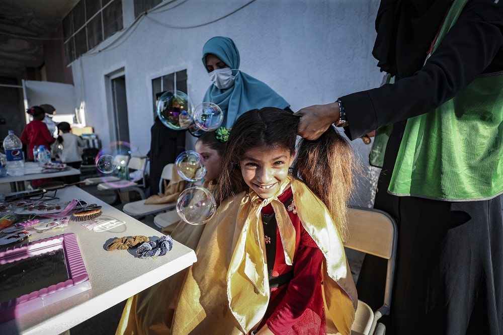 Bu yıl üçüncüsü düzenlenen projenin koordinatörü Yönetmen Tülay Gökçimen'in de katıldığı etkinlikte, savaşın zorlu şartlarında yaşayan yüzlerce kız çocuğuna, Arapça ve Türkçe olarak bastırılan "Umut Veren Hikayeler" kitabı ve kişisel bakım seti de hediye edildi.
