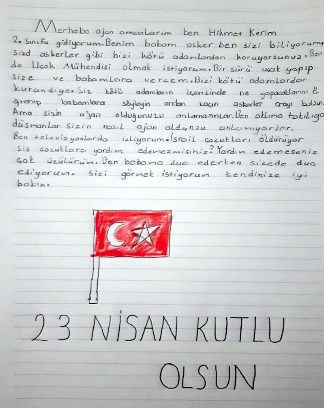 23 Nisan Ulusal Egemenlik ve Çocuk Bayramı dolayısıyla çocuklar, Milli İstihbarat Teşkilatı'na (MİT) mektuplar gönderdi.