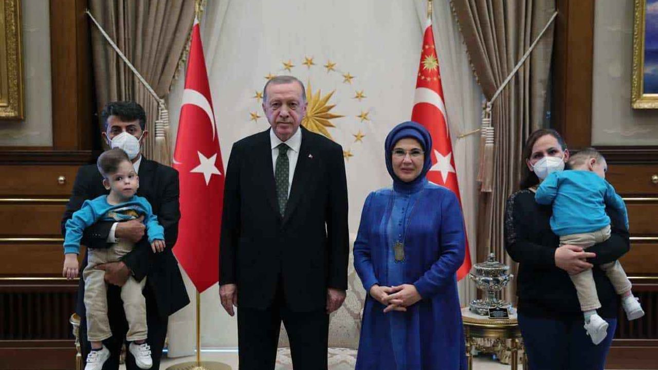 Cumhurbaşkanı Recep Tayyip Erdoğan ve eşi Emine Erdoğan, Antalya'da iki yıl önce kafaları yapışık halde dünyaya gelen ve İngiltere'de yapılan operasyonla birbirinden ayrılan siyam ikizleri Derman ve Yiğit ile pediyatrik beyin cerrahı Keşmirli Müslüman Dr. Owase Jeelani'yi kabul etti.