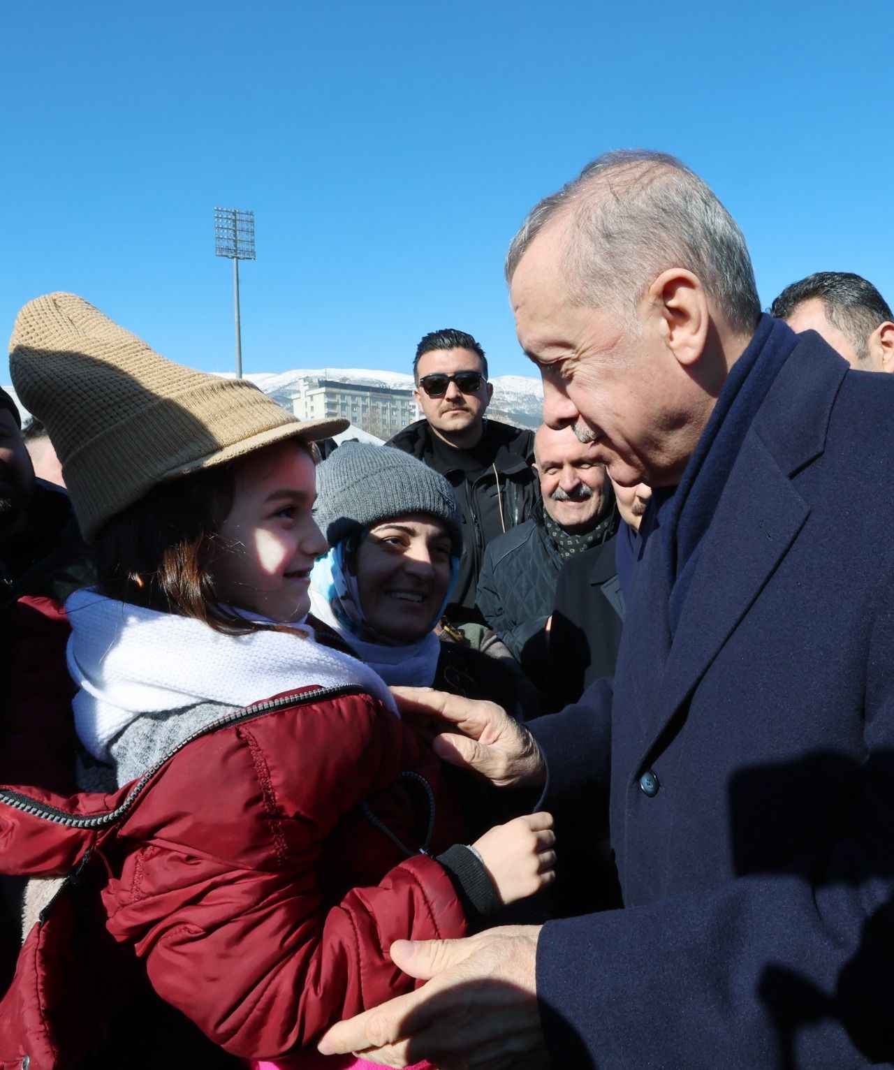 Cumhurbaşkanı burada depremlerin ardından AFAD tarafından Onikişubat Stadyumu'nda kurulan çadır kentte incelemelerde bulundu.