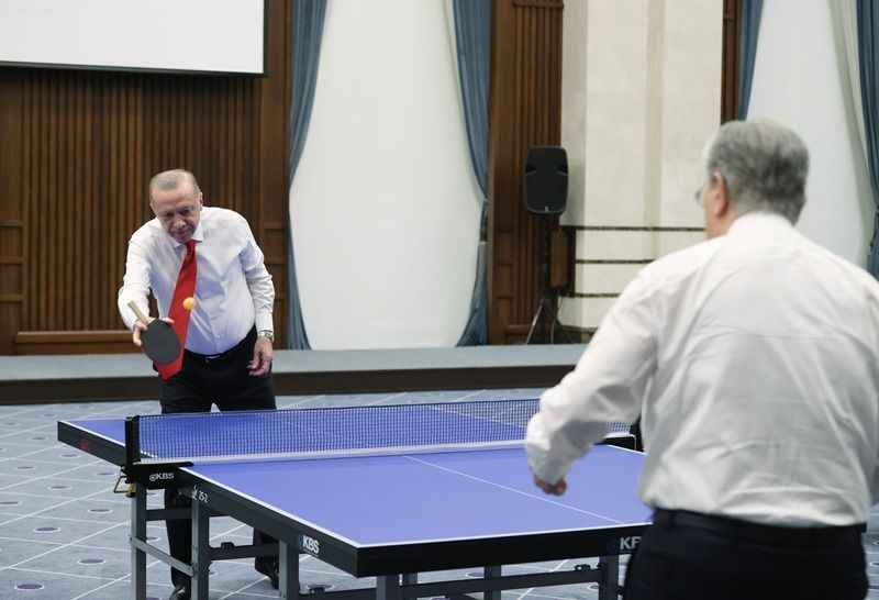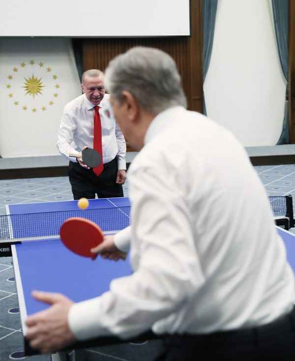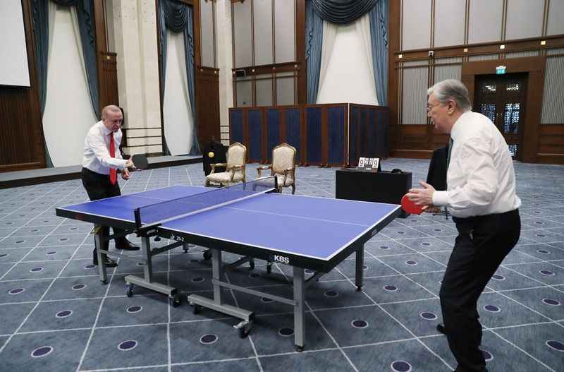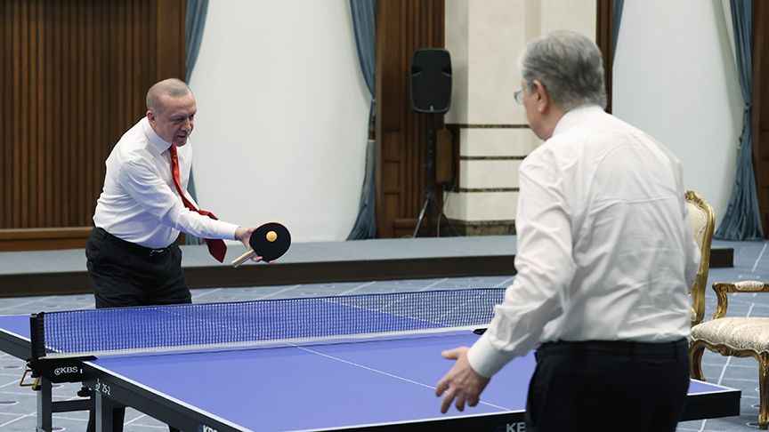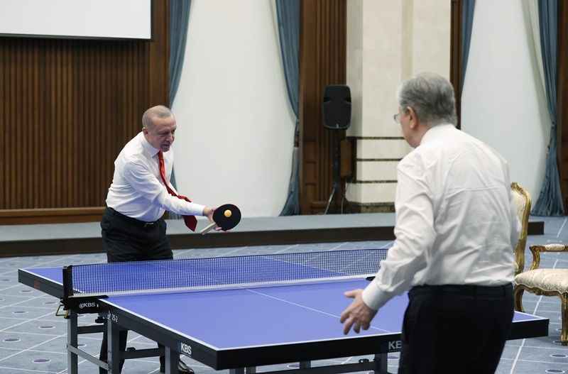 Cumhurbaşkanı Recep Tayyip Erdoğan ve Kazakistan Cumhurbaşkanı Kasım Cömert Tokayev masa tenisi oynadı.