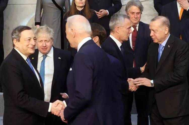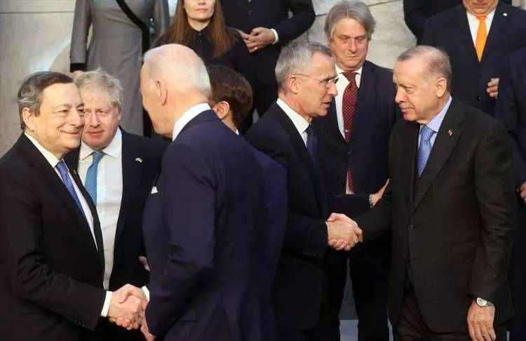 İki liderin, NATO Olağanüstü Devlet ve Hükümet Başkanları Zirvesi kapsamında NATO Karargahı'ndaki görüşmesi basına kapalı gerçekleşiyor.
