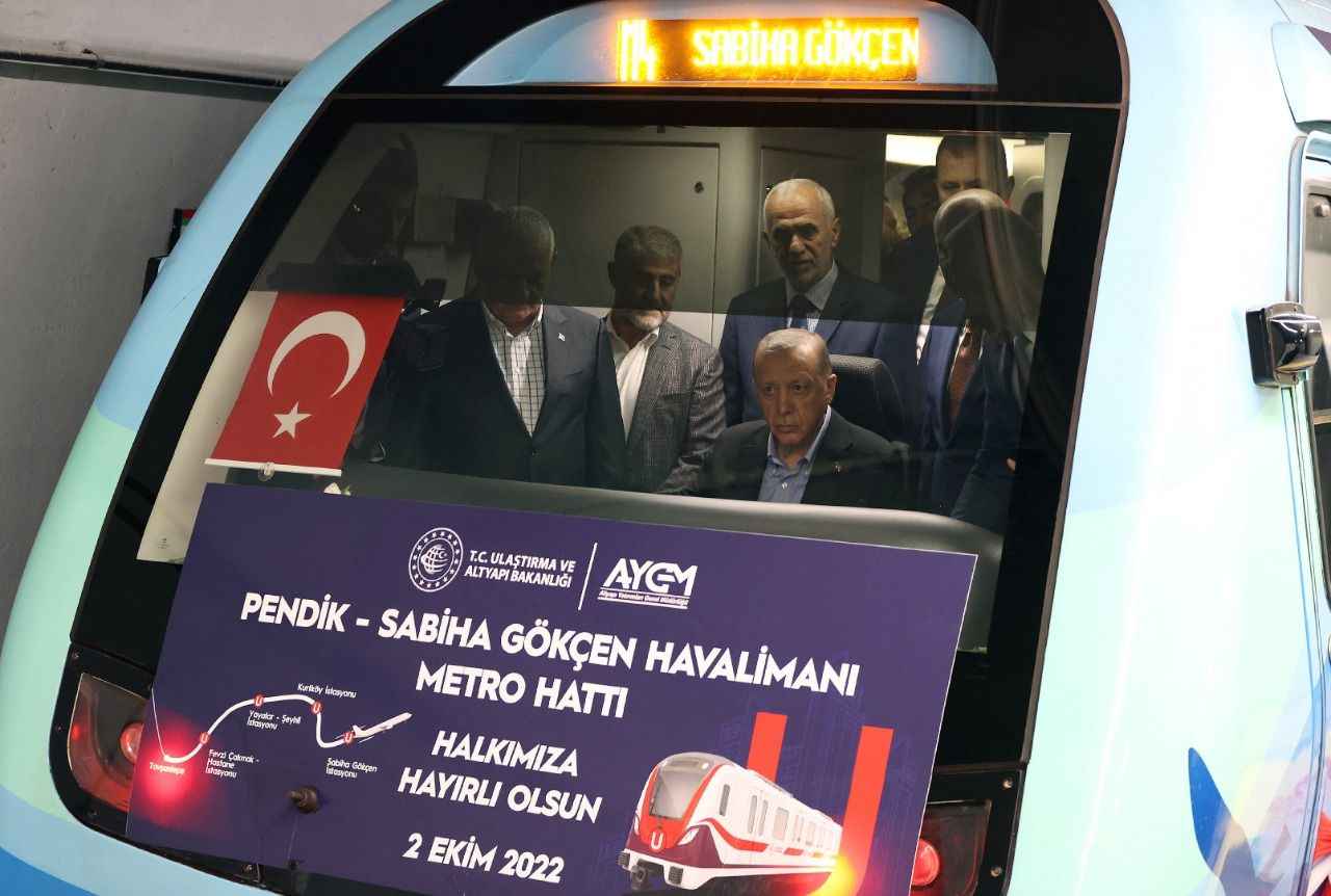 Cumhurbaşkanı Recep Tayyip Erdoğan, Sabiha Gökçen İstasyonu'nda Pendik-Sabiha Gökçen Metro Hattı Açılış Töreni'ne katılarak konuşma yaptı. Erdoğan konuşma alanına metro ile geldi.