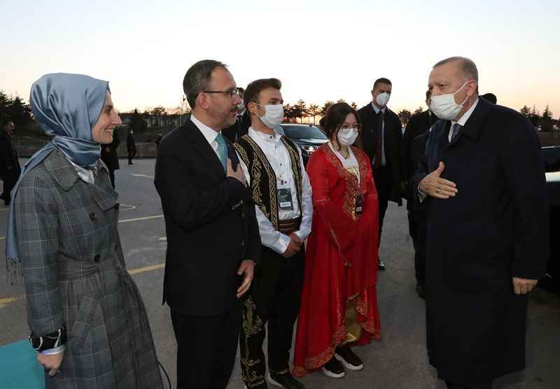 Cumhurbaşkanı Erdoğan'ı programa gelişinde Gençlik ve Spor Bakanı Mehmet Muharrem Kasapoğlu karşıladı.