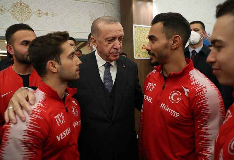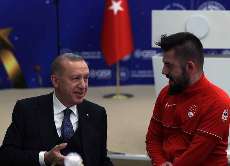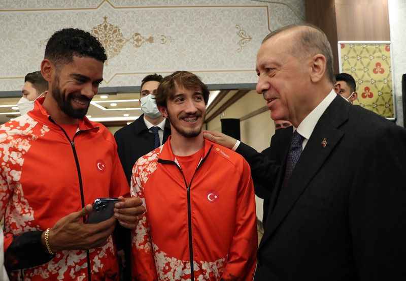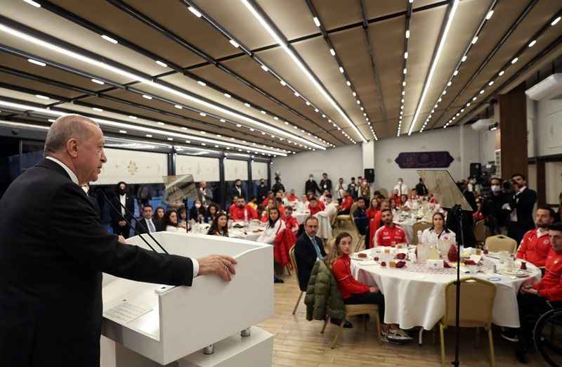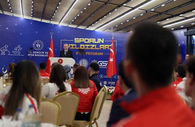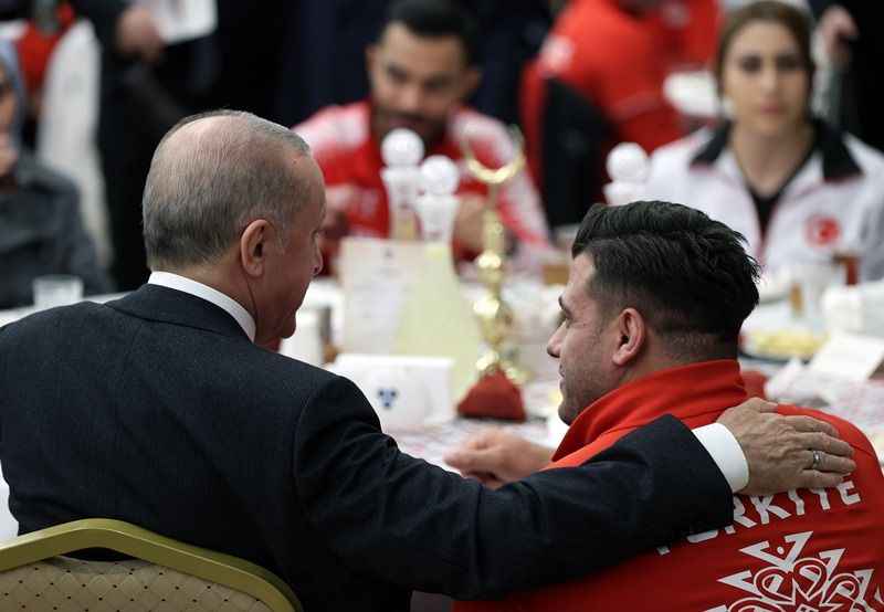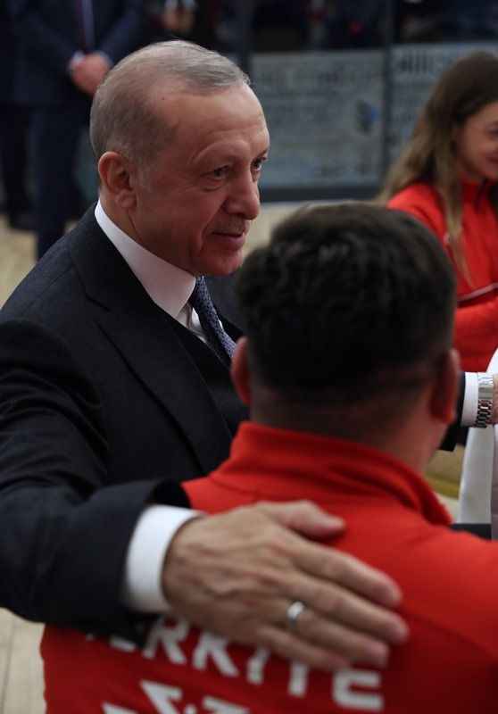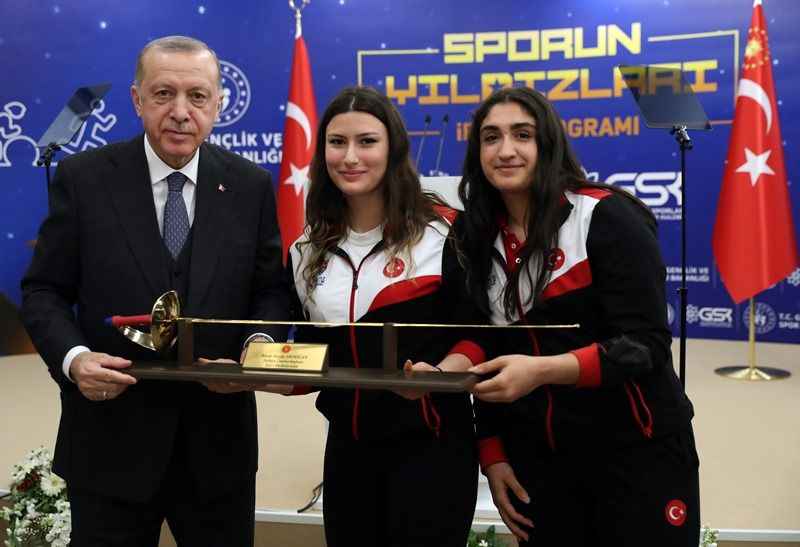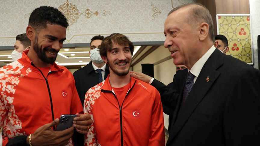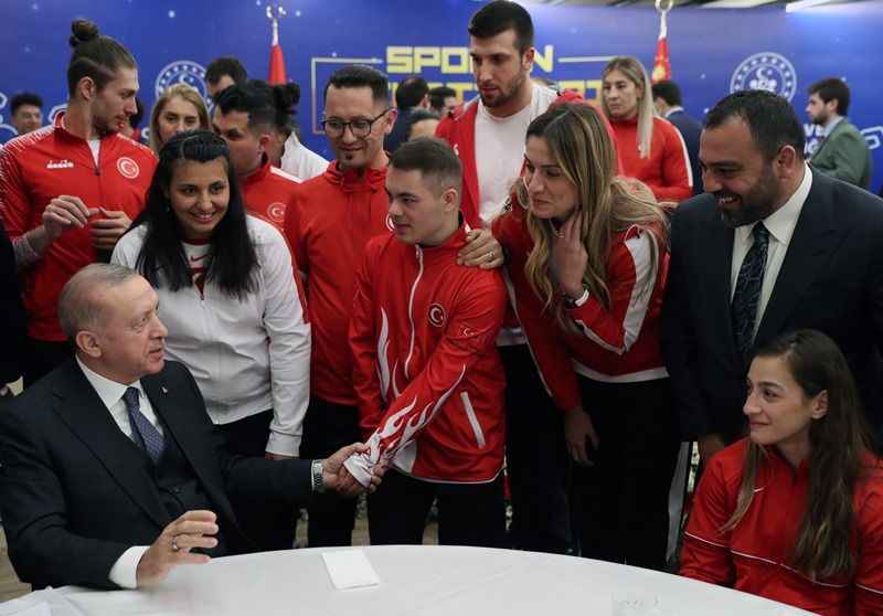 Öte yandan Cumhurbaşkanı Erdoğan, programa katılan sporcularla ilgilenerek muhabbet etti.