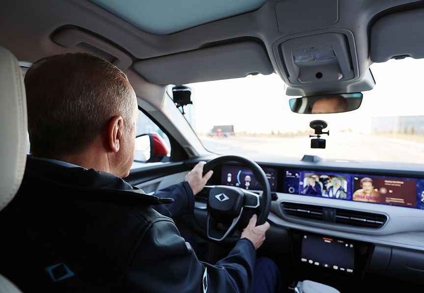 Togg logolu montlar giyen Cumhurbaşkanı Erdoğan ile eşi Emine Erdoğan, sonrasında Togg aracını test etti.