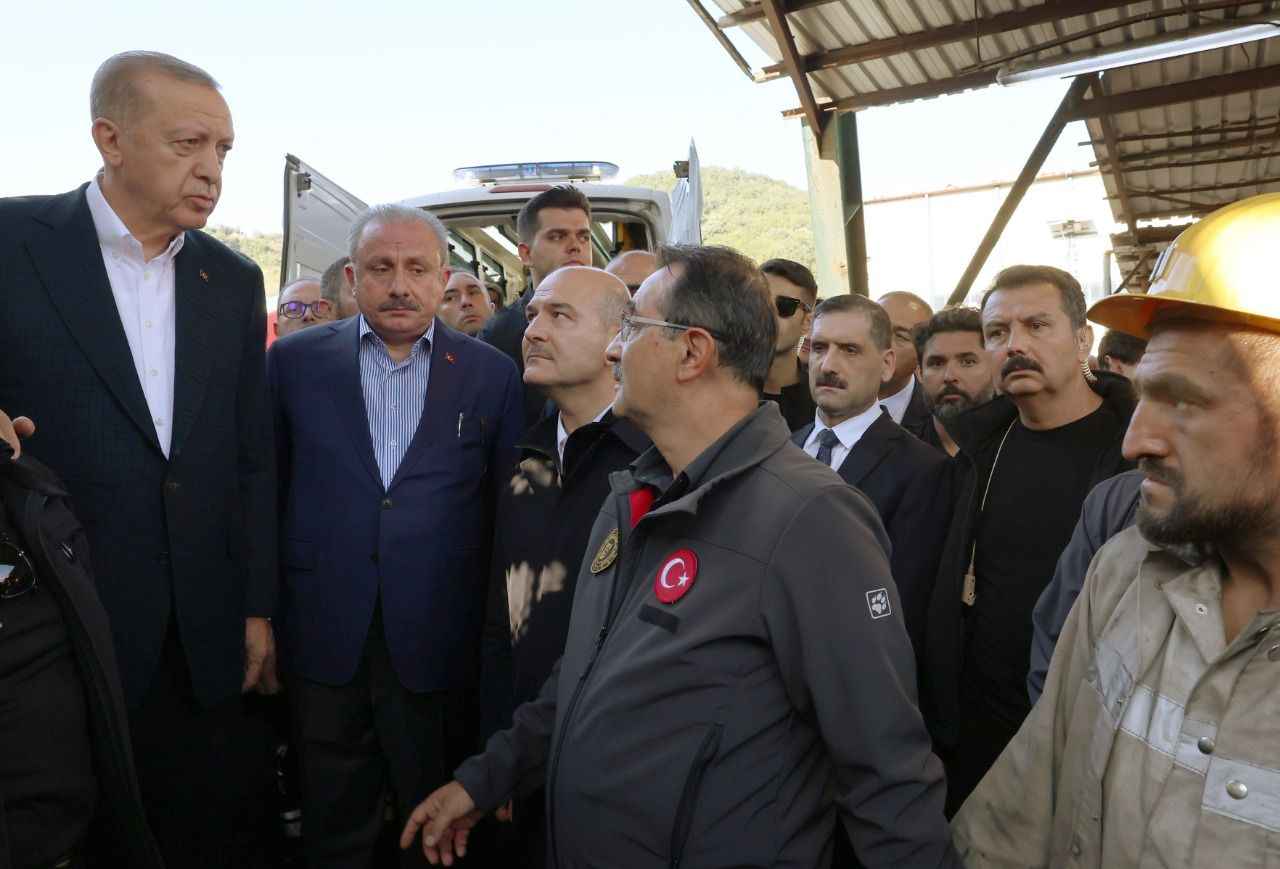Cumhurbaşkanı Recep Tayyip Erdoğan, patlama meydana gelen Türkiye Taşkömürü Kurumu Amasra Müessesesi'ne ait maden ocağında incelemelerde bulundu. Cumhurbaşkanı Erdoğan'ı, Cumhurbaşkanı Yardımcısı Fuat Oktay ve İçişleri Bakanı Süleyman Soylu karşıladı. Cumhurbaşkanı Erdoğan, yaralı maden işçilerini ziyaret etti. \n