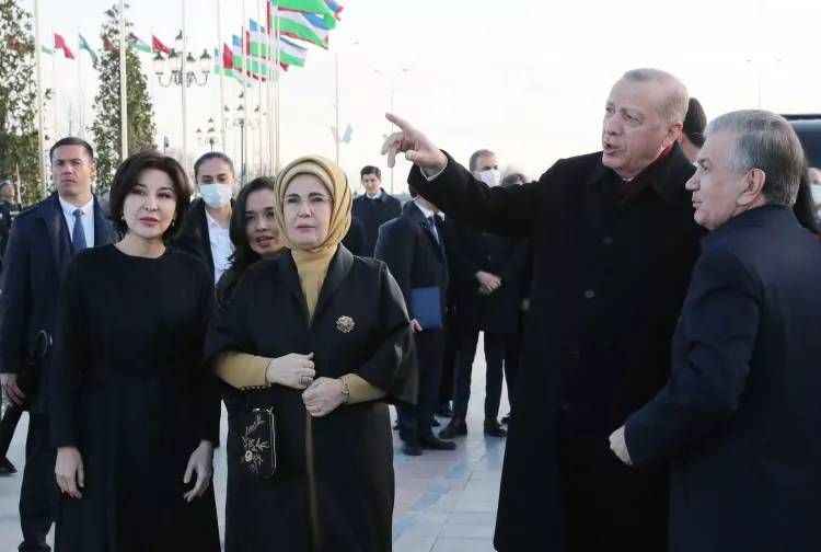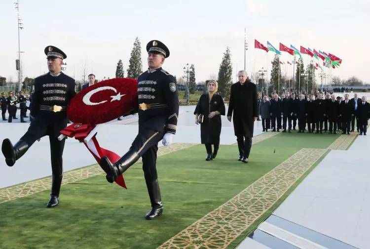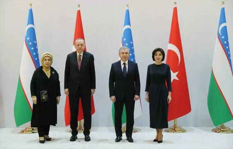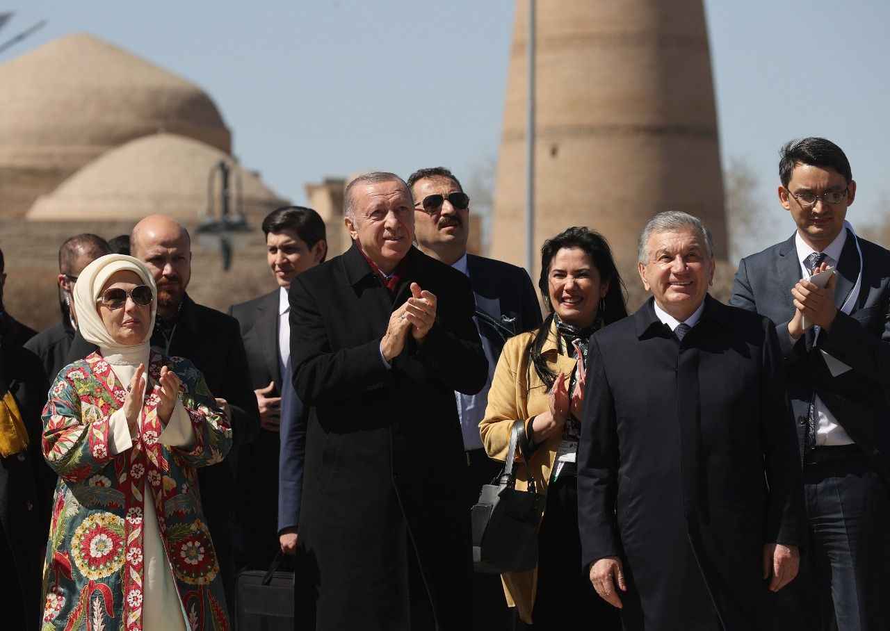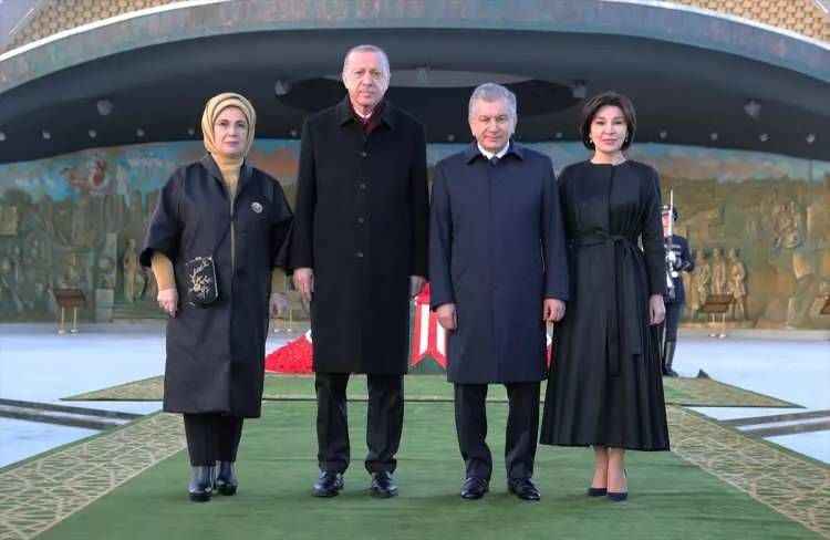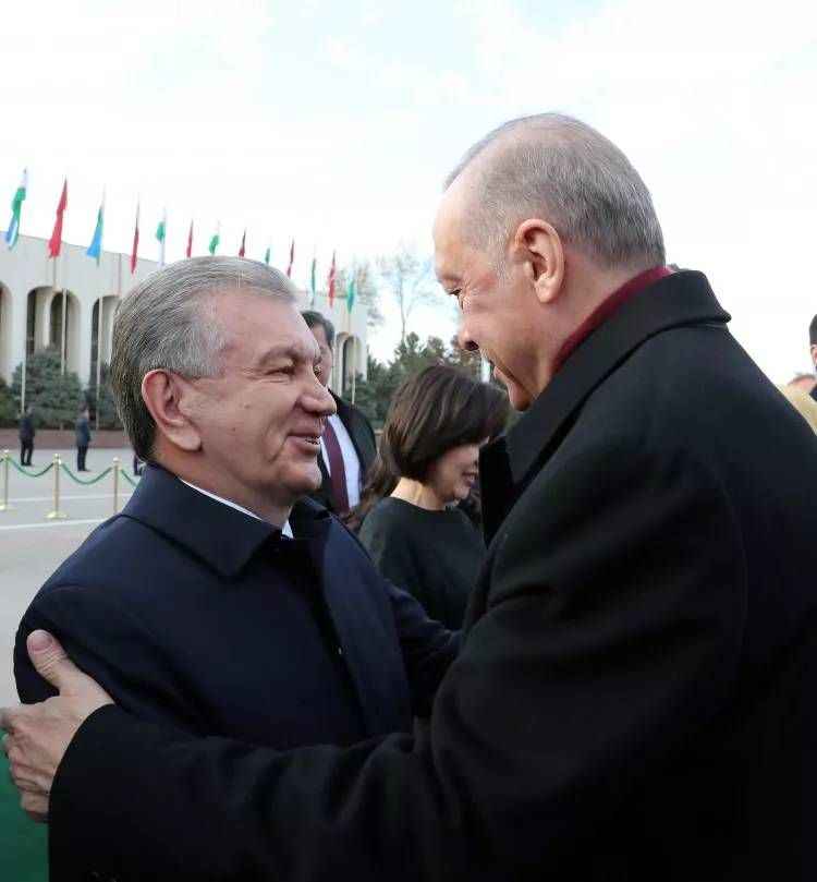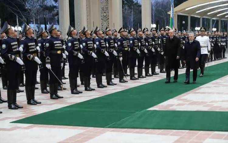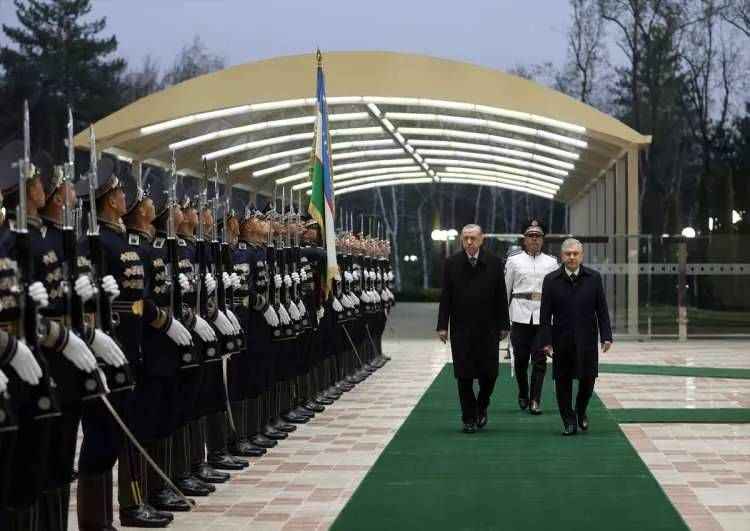 Türkiye Cumhurbaşkanı Recep Tayyip Erdoğan, Özbekistan Cumhurbaşkanı Şevket Mirziyoyev tarafından Kök Saray'da resmi törenle karşılandı. Tören kıtasını denetleyen Erdoğan ve Mirziyoyev, daha sonra heyetlerini birbirine takdim etti.