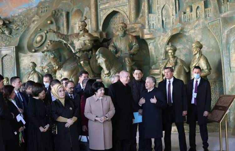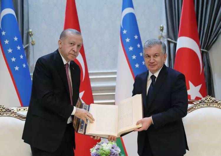 Özbekistan resmi ziyareti kapsamında başkent Taşkent’te bulunan Cumhurbaşkanı Recep Tayyip Erdoğan, Özbekistan Cumhurbaşkanı Şevket Mirziyoyev’e Ali Şir Nevai Kulliyatı’nın özel basımını hediye etti.