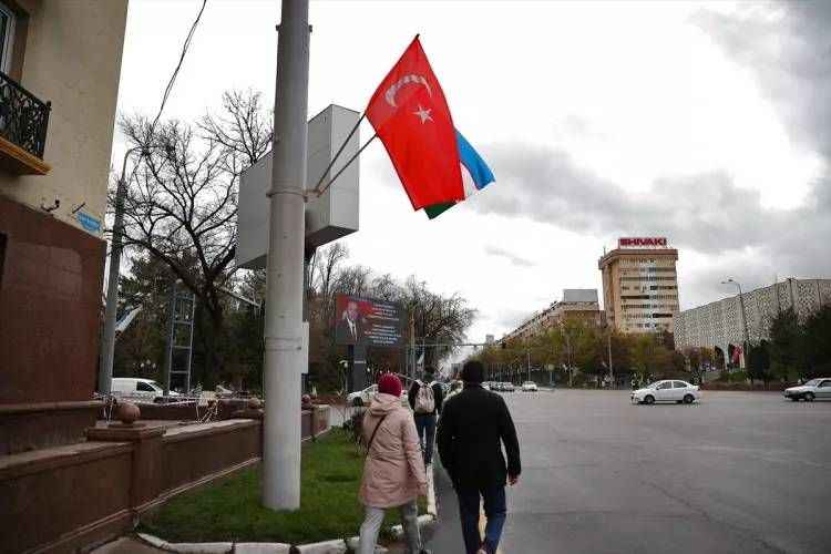 Ziyaret öncesi kentin ana caddeleri Türk ve Özbekistan bayraklarıyla donatıldı.