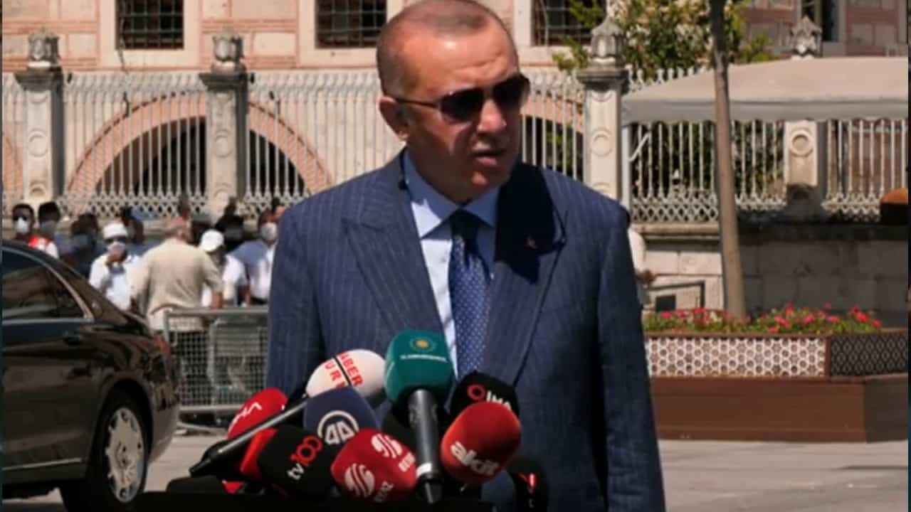 Ayasofya Camii’nde kıldığı cuma namazı sonrası gazetecilerin sorularını yanıtlayan Cumhurbaşkanı Recep Tayyip Erdoğan gündeme ilişkin açıklamalarda bulundu: