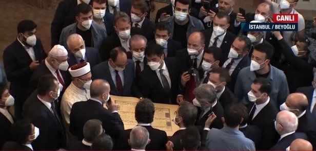 Cumhurbaşkanı Recep Tayyip Erdoğan cuma namazı sonrası Taksim Camii'ne Kur'an-ı Kerim hediye etti.