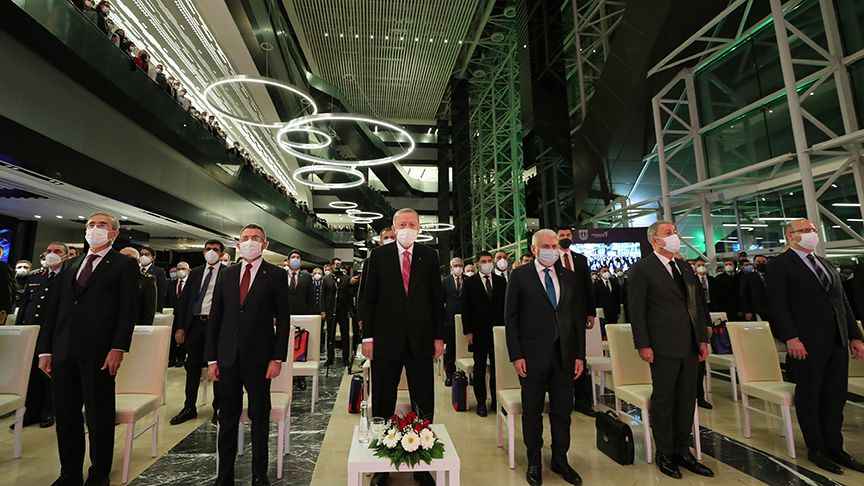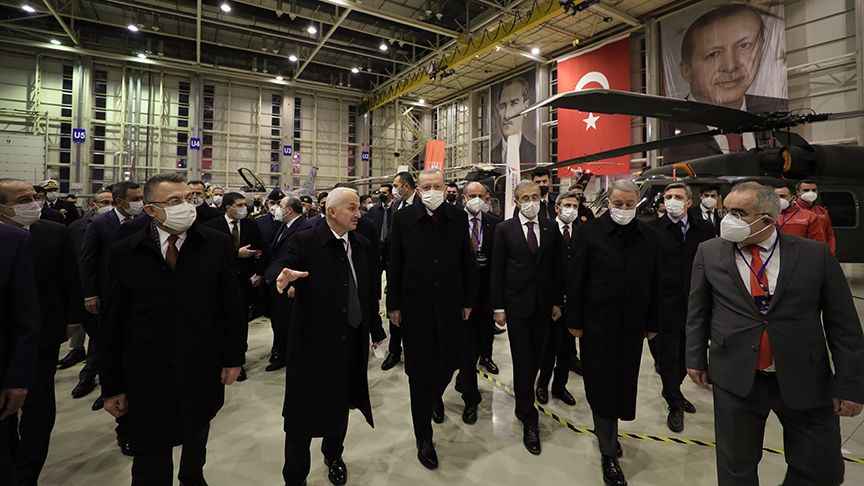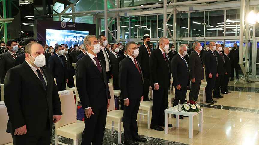 Cumhurbaşkanı Erdoğan'a Cumhurbaşkanı Yardımcısı Fuat Oktay, Milli Savunma Bakanı Hulusi Akar, AK Parti Genel Başkanvekili Binali Yıldırım ve Cumhurbaşkanlığı Savunma Sanayii Başkanı İsmail Demir de eşlik etti.