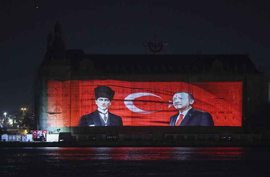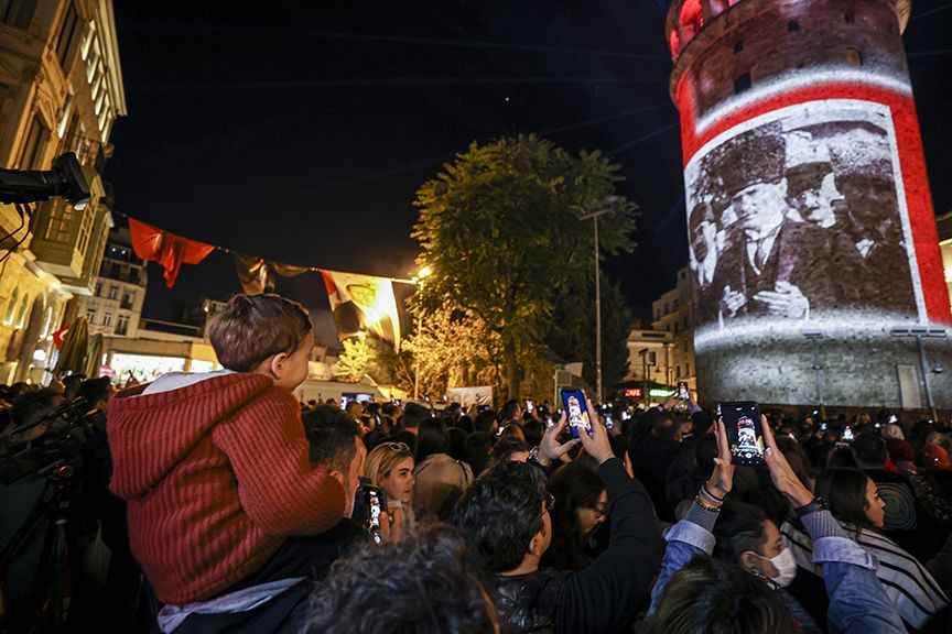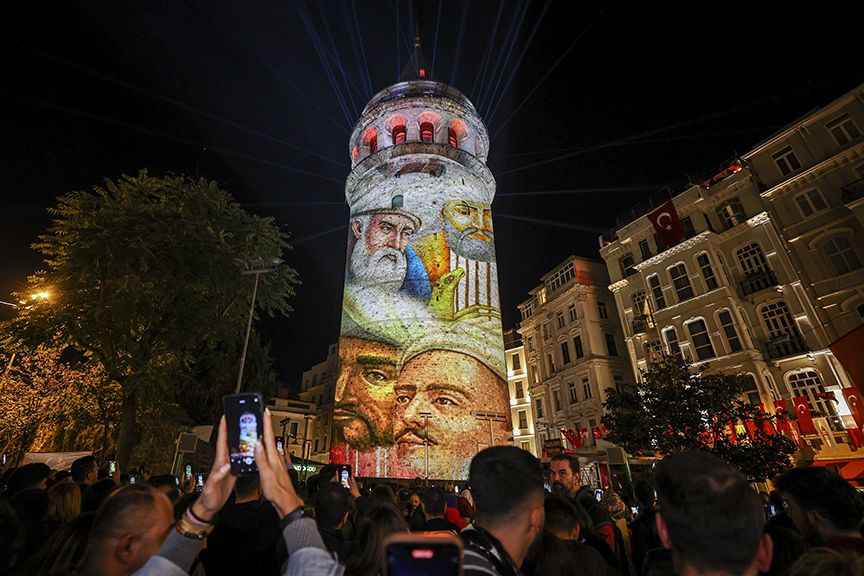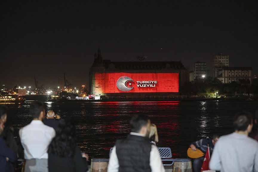 "Cumhuriyetle Büyüyoruz, Türkiye Yüzyılı'na Giriyoruz" temalı mapping gösterileri, "Çift başlı bir kartaldık kanat açtık tarihe. Kök saldık çınar olduk 3 kıta 7 iklime. Hilalimiz yıldızlandı al kanlara boyandı, bayrak oldu Cumhuriyete. Kenetlenip şahlandık devlet millet el ele. Bak eşiğindeyiz şimdi o büyük hayalin. Deden, ceddin, baban neslin. Duysun dünya. En kahraman Türk milleti. Bak Türkiye Yüzyılı geliyor, daha çok parlıyor ayı yıldızı Türk'ün." sözleri ile başladı.