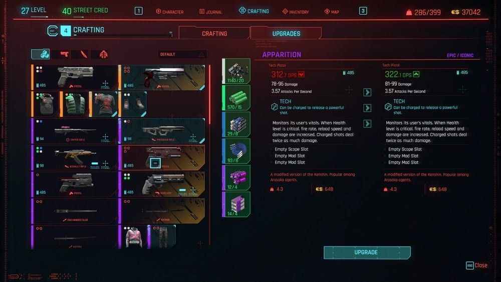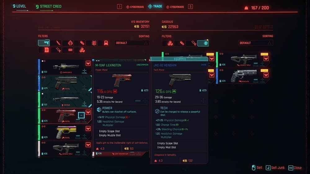 Cyberpunk 2077’de sürekli olarak yeni silahlara geçiş yapacaksınız. Güncelliğini yitirmiş silahlarınızı atmak yerine satmalı veya bileşenleri işlemek ve yükseltmek için parçalamalısınız. Oyunun başında silahlar, bulacağınız en değerli şeyler olacak. Onları bir satıcıya satmak, yükseltmelerinizi finanse etmek için yerinde bir hareket olacak. Ne kadar çok paranız olursa o kadar çok silah satın alıp yükseltmeler yapabilir böylece V’nin daha çok hayatta kalmasını sağlayabilirsiniz.