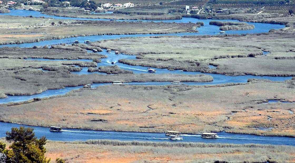 Avrupa'nın en iyi korunan açık alanları arasında gösterilen ve her yıl ortalama 1 milyon turisti ağırlayan Dalyan Kanalı'nda turistik gezilerde kullanılan tur tekneleri, labirent görünümlü sazlıkların arasında turistleri gezdiriyor.