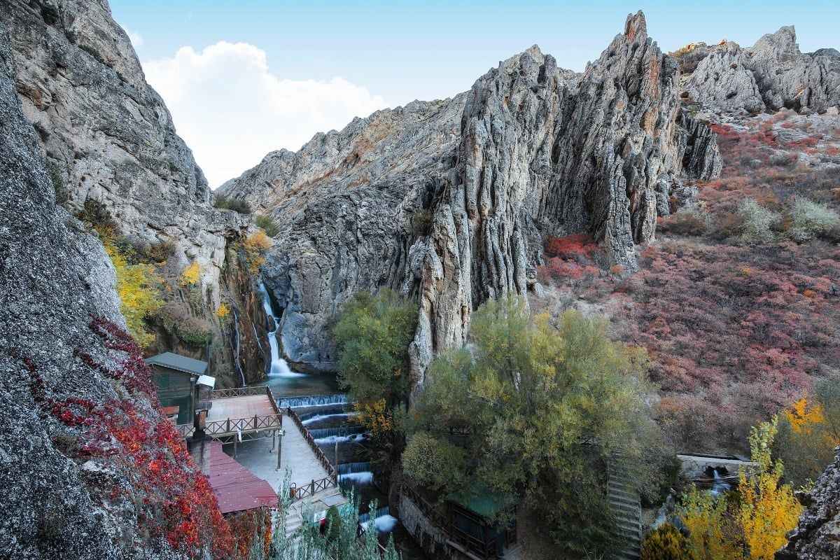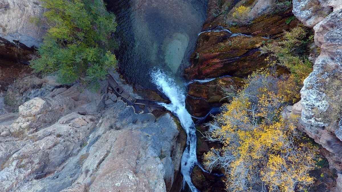 Yazın serin havası ve çevresindeki yemyeşil bitki örtüsüyle, kışın ise metrelerce yükseklikteki buz sarkıtlarıyla büyüleyen şelale, sonbahar mevsiminin yaşandığı şu sıralarda sararan yapraklarla misafirlerini ağırlıyor.